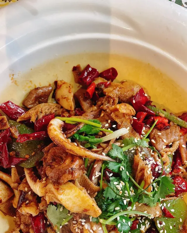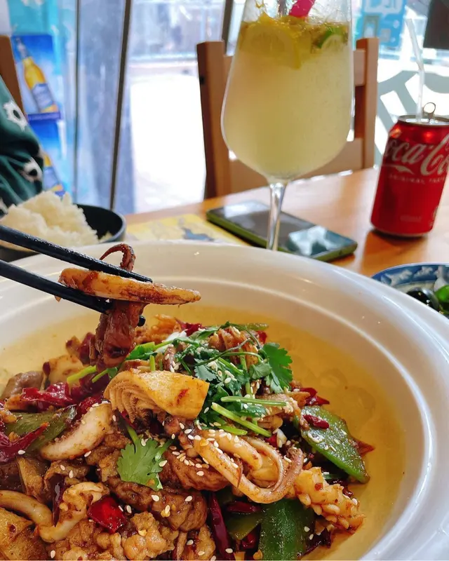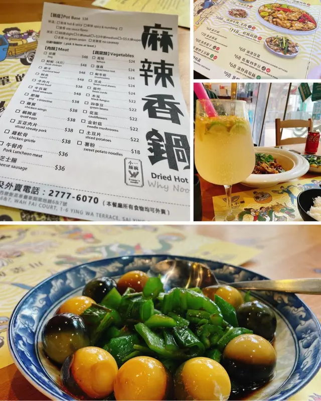 之前買過外賣覺得幾好,餸多飯多味道都唔錯舖頭闊落乾淨今日行過就再堂食試下其他~青椒小皮蛋($38)值得一讚嘅青椒!青椒好香爽口但唔辣,襯埋下面帶醋味嘅汁,好好味!而且好多粒皮蛋仔😲份量唔少.平時出面多數一粒大皮蛋切6份.依碟皮蛋,2個人食都覺得幾多~麻辣香鍋($38鍋底)香鍋要選五餸起炒.選咗肥牛/魷魚/肥腸/萵筍/牛柏葉.正常發揮,麻麻辣辣,肥腸乾淨,無太餘肥膏.略嫌鍋底無太多芽菜或其他配料附上百香果青檸特飲($28)味道唔會太甜加上梳打,清爽查看更多