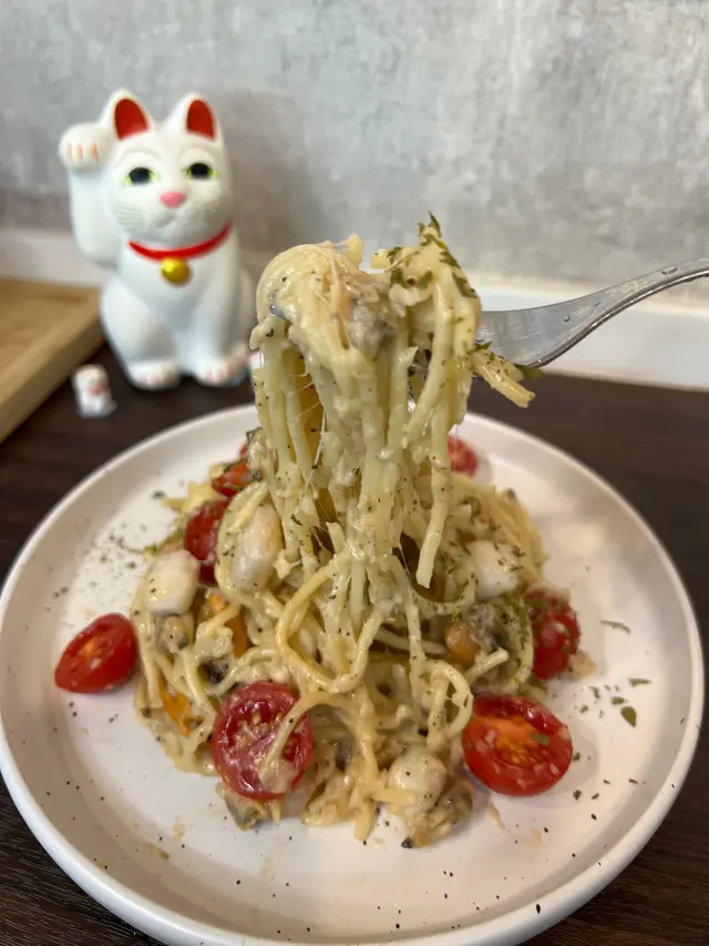 一入到呢間餐廳,就聞到一陣陣嘅蒜香撲鼻而來,實在太誘人!首先,我嘗試咗蒜香意粉,鋪頭嘅人推介加咗芝士、蕃茄同雜錦海鮮。走佬口,意粉咬落去Q彈得嚟唔會太硬,佢哋個芝士汁做得又香又滑,真係惹味的很!海鮮都新鮮,蕃茄爆汁,整體嚟講,食落真係幾滿足!對於食物嘅另一個驚喜,就係佢哋嘅沙律。我選咗小份自選沙律,份量真係一啲都唔細,飽滿得黎又新鮮,雜錦嘅配料好足料。柚子同蝦的組合出奇地匹配,每一啖都清新過癮😍。義大利黑醋嘅醬汁酸酸甜甜,為沙律增添咗不少風味。當然,點可以唔試下佢嘅全麥吐司呢?🍞熱乎乎又脆口,拉絲嘅奶酪溶化喺嘴裏,實在係幸福感滿滿😋!加上呢度環境舒適,店員又親切,仲有只可愛嘅貓店長陪伴😻,整體體驗真係好過癮,必定會再嚟!…查看更多