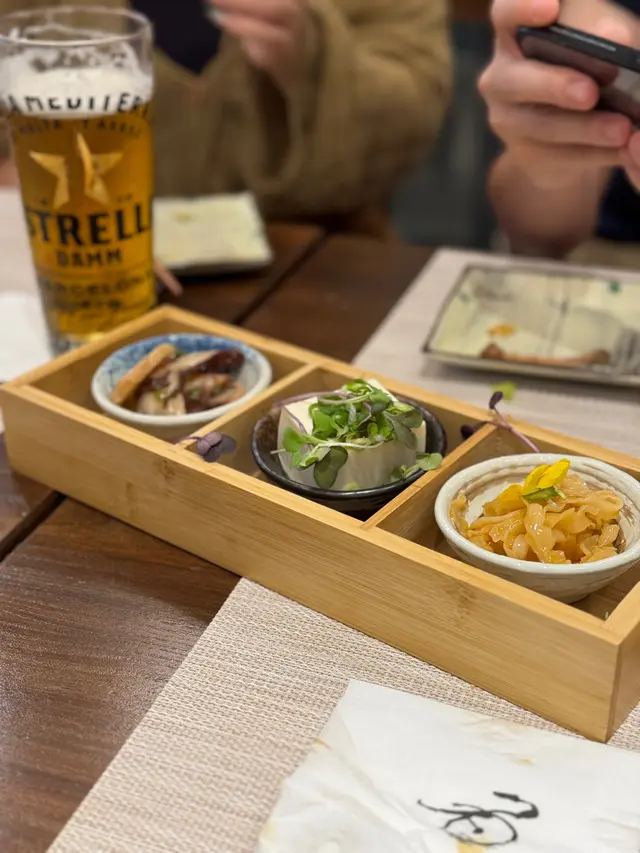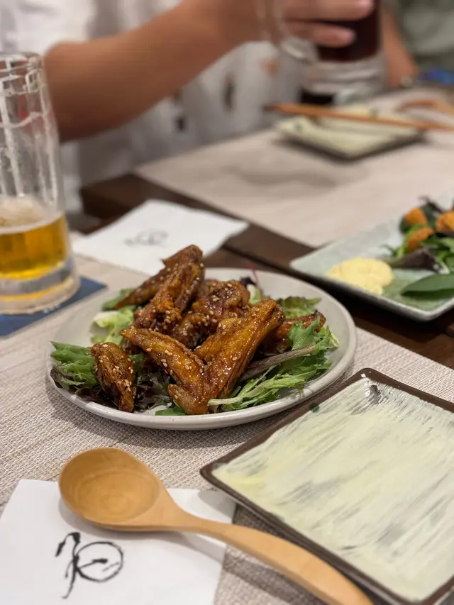 上星期五適逢朋友生日,選擇左呢間新開嘅日式居酒屋為朋友慶生。餐廳唔大,只有幾張檯,好在有預先訂位,因為我滿座。老闆知我哋為朋友慶祝生日都預先留左入面較舒適嘅位置👍因為朋友鐘意日式菜,所以想試吓,估唔到有驚喜!餐廳亦有好多款生啤選擇,最正係連沖繩Orion啤酒都有!不過如果有埋冰杯會更正😌我哋嗌左華味鳥手羽先,送酒一流!味道幾夠,炸得岩岩好👍我哋點左4人餐,起初驚唔夠食,點知好飽🫣漬物三食,正常中規中矩。主食揀左蟹肉蟹籽蟹膏拌飯,一見到已好驚喜,好足料!(呢間店所有蛋都係用蘭王)呢個好想再encore😍另一個主食揀左火炙牛肉拌飯,啲日式牛好嫩滑,燒得岩岩好!另外,老闆特別推介呢味自家制免治雞肉棒,沾上蘭王蛋汁,配上鮮嫩彈牙嘅雞肉,好好味🤤老闆果然冇介紹錯👍串燒燒得唔錯,火喉夠,送酒一流清酒煮蜆,啲蜆隻隻都好大隻,新鮮👍但個湯酒味略重。整體黎講,呢間小店全部都用高級日本食材,以呢個價格黎講CP值好高👍👍希望黎緊發掘多啲新菜式,下次一定會黎試日式早餐!Btw, 老闆如果在場會同客人傾計,好親民,氣氛好好👍查看更多
