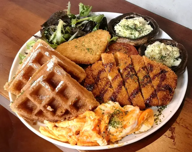 $98 Allday breakfast 窩夫:淋同微微暖(可能驚人多做唔切?明明冇人落單都做定放喺度,至少有5分鐘以上)加上放喺沙律側邊,浸哂柚子醋,超酸好難食👎🏻吉列豬扒、薯餅:控油失敗,成個碟都係油。豬扒上碟都係微熱,粉漿殼勁硬,肉好實蕃茄、焗大菇:完全冇落鹽調味淡茂茂,煎唔夠時間,蕃茄芯係硬既、菇一壓就好多水滲出嚟--------------有同侍應反應左,隔左5分鐘左右得一句同左老細講唔好意思。開放式廚房所以其實廚師都肯定聽到但完全冇回應,感覺其實冇咩心做lor查看更多