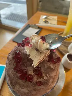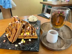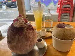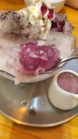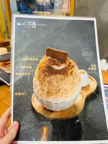 听闻这间糖水舖很有新意,很适合让人打卡,环境和食物都很靓,今天便决定和朋友一试!店舖位置很方便,就位于天水围西铁站步行2分钟的距离,走进去的道路上都充满回忆感,有不同的抒情文字和歌词,配合闪烁的灯光,令到整个人的心情都有说不出的感受。作为打卡点真的再适合不过~进到店舖,店员很热情地介绍他们的特色招牌,有不同的甜品和小食,应有尽有。鲜杂果西瓜盅雪芭(限量) 芒果雪糕 $70作为本店的限量招牌,果然让人眼前一亮,摆盘就已经很特别,一整个西瓜和不同的水果混为一体,有芒果香蕉⋯再配上芒果味的雪糕球,既是搭配又是点缀,雪糕汁的融入,令到整个西瓜冰入口的口感非常好。好开心这次可以有口福,享受这个限量的甜品🍧~苹果麻糬牛角包窝夫(曲奇雪糕) $58老板说他们的麻糬是自家制造,用牛奶和独特的配料调制而成,很是特别;而他们的牛角包窝夫🧇也是有不同之处,具有特色,好吃而不腻🤗于是我们肯定要试一试啦,窝夫款式有抹茶、苹果、香蕉等不同的口味,我们选择了苹果✌️酸酸甜甜的苹果粒和果酱,让整个窝夫别具一番风味,酥酥软软的牛角包,配上店铺自制的牛奶味麻糬,果然很好吃😋杨枝金露沙冰 $42夏天当然要来一杯沙冰啦,店舖的杨枝甘露也具有特色,芒果🥭柚子肉和西米的搭配,淡淡的清香,口感也很清新,甜而不腻,喝起来很不错。这间店舖的生意真的很热闹,满座的同时又有很多外卖单~座位舒服,店员态度友善热情❤️🔥味道好的同时又能够保持水准,作为甜品店确实是不错的选择!饭后散步吃个甜品🍨打个卡~感觉真棒🤭一糖(屏山) 天水围屏山上璋围249号地下1号舖…查看更多