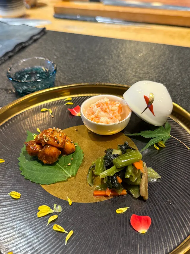 蜜柑雕的清爽甜美赤背的清脆口感醋鯖魚的微酸亮點北海道綿密鮮甜生雲丹的奢華口感🥺👍赤背的清脆口感北海道生雲丹的奢華口感一品料理Chef's Special 煮物(甲羅燒)
