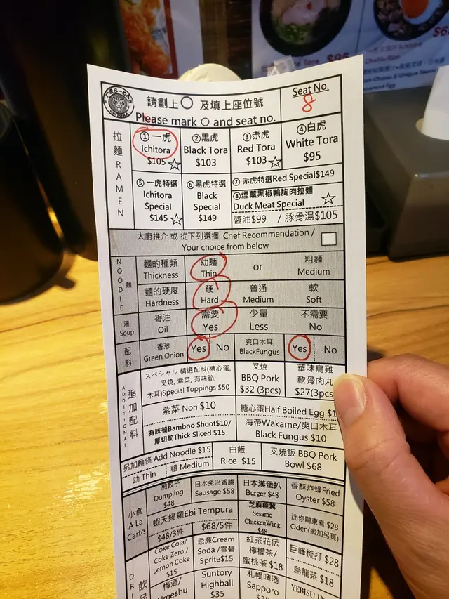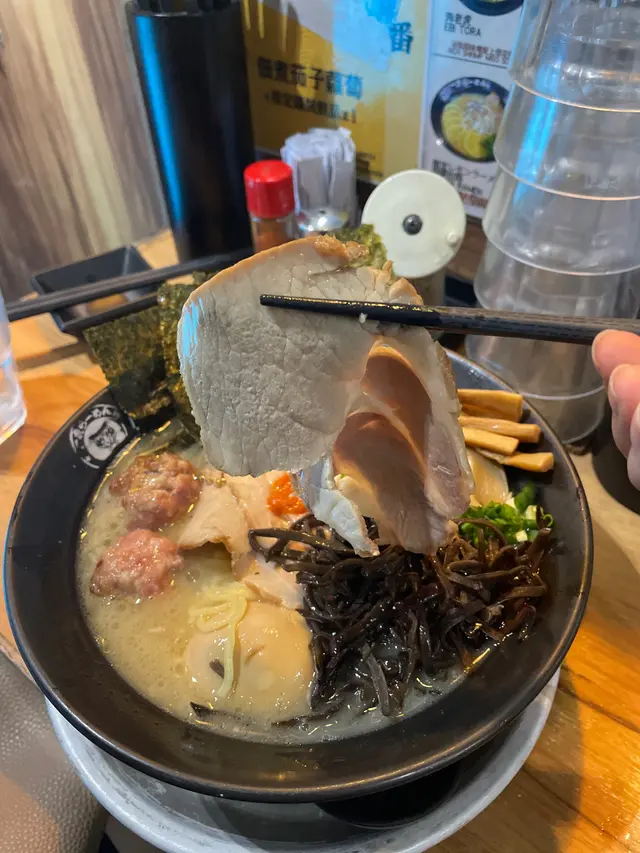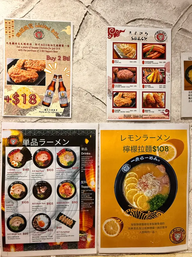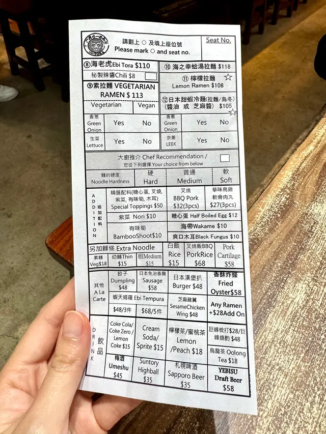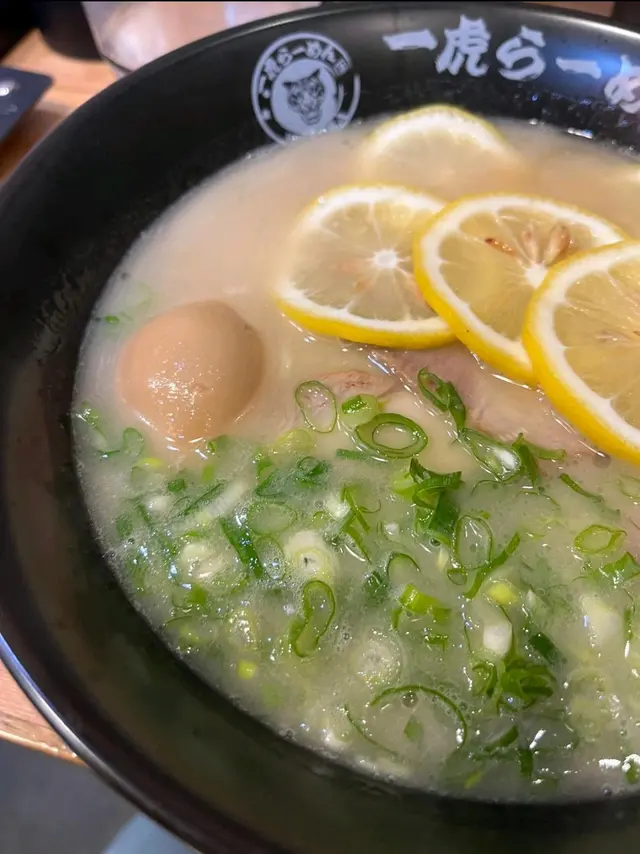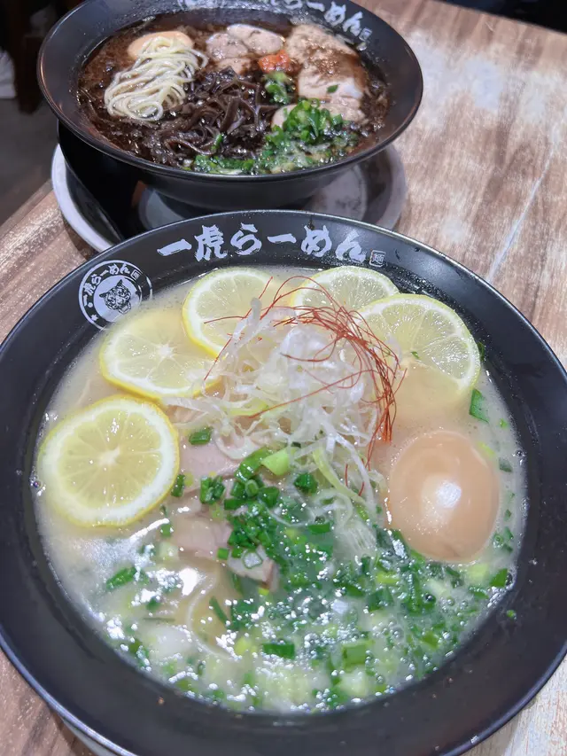 黑虎拉麵$103濃郁黑蒜油加豬骨湯,唔會太油,麵就揀左大廚推介既幼麵同煮軟身,每啖都好好味,叉燒係薄切唔會肥膩,唐心蛋都岩岩好,加蛋必須的👍🏻👍🏻👍🏻留翻最後浸湯食😋檸檬拉麵$108係店員推介,即管試下有冇伏,估唔到檸檬拉麵有驚喜😲湯好Fresh清新檸檬味,似食炸雞個種😋無諗到原來禁夾,麵一樣揀左大廚推介幼麵,配搭得好好,當然一樣係薄切叉燒再加唐心蛋😋記得加蛋,$12一隻,然後見到隔離枱係食素拉麵,原來連素拉麵都有😲😲餐廳真係好細心,配合到唔同飲食習慣,我下次都會想試下食素拉麵😋…查看更多