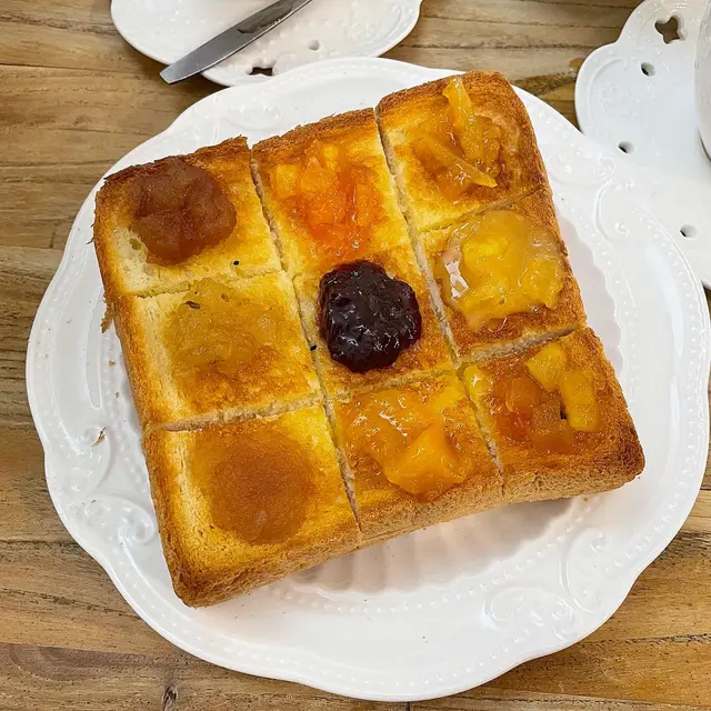 -行行下西貢,唔肚餓想試啲小食就揀左一起果醬做下午茶🍞果醬九宮格多士 $49 (7.4/10)呢個想試好耐,佢係由9款唔同嘅果醬經成,其中有玫瑰蘋果、丁香香橙、熱帶風情、肉桂蘋果、士多啤梨、雜莓、芒果、桂花雪梨、木瓜雪耳、蛋黃菠蘿,每試一塊都可以估下係邊隻果醬,我覺得咁樣幾得意,不過有樣唔好係啲果醬搽到每塊份量都唔同,有啲味道會偏甜,我自己最鍾意玫瑰蘋果,覺得桂花雪梨同埋丁香香橙太甜,整體嚟講幾好玩嘅🥴🥠炸薯角配士多啤梨燒烤醬 $36 (8.1/10)個薯角熱辣辣,又夠脆,好好食,份量都比得幾多,但唔知點解點完個士多啤梨醬之後好似同冇點差唔多咁,可能本身個薯角就有落到調味,每到個醬食落嘅味道唔出🥃玫瑰蘋果茶 $32 (7.5/10)冇咩茶味,似山渣茶多過玫瑰蘋果😂😂,點飲都覺得係山渣味#sorriso_新界 #sorriso_西貢 #sorriso_尖沙咀 #sorriso_九龍-📍 一起果醬西貢市場街9號地下尖沙咀松山道15-17號地下D舖🕑Mon to Fri 10:00~20:00; Sat to Sun 10:00~21:00-…查看更多