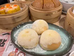 雪山叉烧包热辣辣,新鲜出炉,外皮脆脆之余里面好软熟,挤满叉烧的馅料。