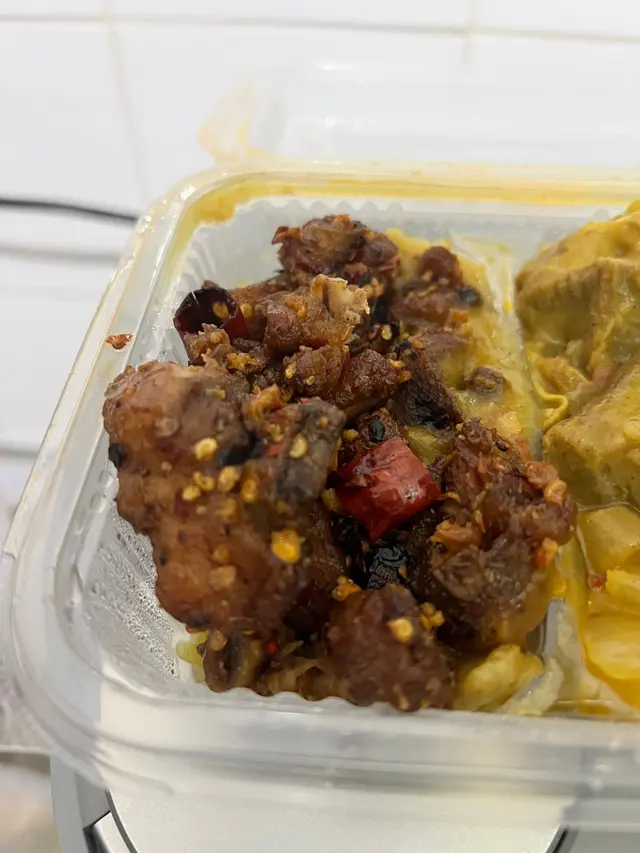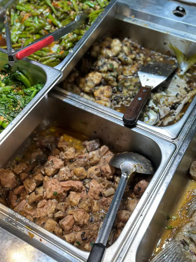 間唔中都會去雙餸飯店買幾個餸返屋企加餸。呢間之前未食過,因為見到個櫃擺咗勁多款唔同餸,又望落好吸引,所以就試吓佢。海鮮有白鱔、䱽魚、炸魚仔、蝦等肉有雞髀、蒸雞、糖醋骨、咕嚕肉、椒鹽豬扒、炸雞翼、辣子雞等菜有炒四季豆、苦瓜炒蛋、炒白菜菜心、西蘭花、炒薯仔絲、油麥菜等最後揀咗糖醋骨、辣子雞、炒四季豆、蒸白鱔、苦瓜炒蛋、椒鹽豬扒。糖醋骨 - 甜同醋味都好夠,一口size,都可以啖啖肉。辣子雞- 味道香辣,好啱餸飯。炒四季豆-四季豆同埋肉碎,仲好似加左橄欖菜一齊炒,炒得好香口,食既時候個口感仲keep 到好爽脆。蒸白鱔 -白鱔係厚切,魚肉彈牙,食得出係新鮮魚👍加左啲豆豉同葱花調味。椒鹽豬扒-有大概7-8塊,望落好吸引,豬扒醃得好味,啖啖肉。苦瓜炒蛋- 聽到前面有人叫,跟住黎叫🤭除咗苦瓜同蛋入面仲有啲木耳同瘦肉,食落好香蛋味又有啲肉既甜味,苦瓜同木耳都係爽脆,口感豐富。超啱送飯,必食之一。所有餸都冇過多調味,好有屋企味道。餐廳老闆都好友善,見到我選擇困難都耐心介紹,同D熟客有傾有講。門口望到個良心企業證書,值得欣賞。…查看更多