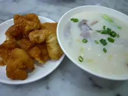 去开仓扫平野…行完已经过晒午饭时间, 极累又肚饿…黎到附近商场快快找个方便小食…就入左哩度谂住食碗粥…哩个时候大把位环境好清闲…快马一人一碗粥加油炸鬼啦…己经系两点供应下午茶优惠套餐时段, 但回头望下单, 见服务员阿姐落左正牌单价, 我地想要讨回个小公道!!...谁不知位阿姐吾耐烦不特止, 仲强词夺理咁话我地冇拿著个”下午茶餐牌”落单?!