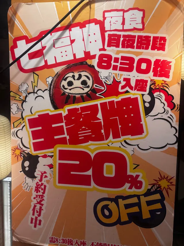 七福神和食亭 (佐敦) 网上订位享低至8折优惠并赚Rice Dollars 网址: https://s.openrice.com/QrLS04UW600 地址: 香港佐敦彌敦道311-313號1樓 电话: +852 23882302