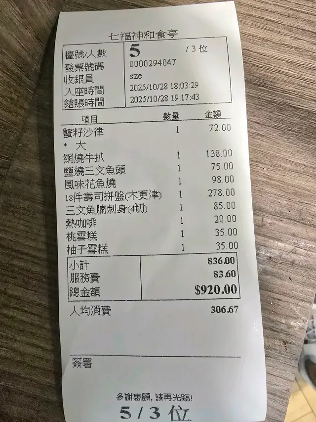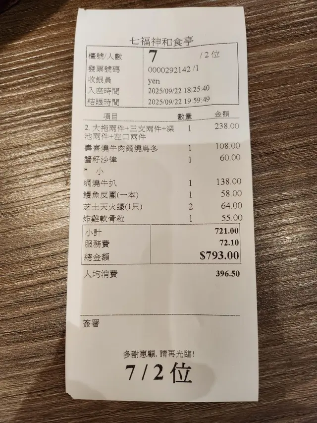 七福神和食亭 (佐敦) 网上订位享低至8折优惠并赚Rice Dollars 网址: https://s.openrice.com/QrLS04UW600 地址: 香港佐敦彌敦道311-313號1樓 电话: +852 23882302