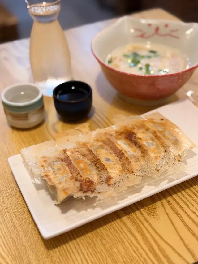 餐廳貼了很多動漫海報, 不停播著日文歌, 加上細細間和淺啡色簡約裝修, 滿有日本風味 😊 招牌餃子貳號拼蒜芯餃配壽喜燒風味烏冬 $69煎黑白松露肉餃拼韭菜餃 $60餃子皮尚算適中, 不過偏細隻, 所以建議配烏冬 ☺️ 全部餃子都以豬肉做餡料, 非常新鮮, 豬肉餡口感比較像肉餅, 很實在。可能味道問題, 難得地覺得煎餃比湯餃出色 😆 煎餃夠香口, 微微黑松露味, 不會喧賓奪主, 韭菜味返正常, 可以再突出點 😬 4款餃的排名會是黑白松露 -> 韭菜 -> 蒜芯 -> 貳號餃物椰鍋 $94餐廳最近推出的季節性鍋物, 餃子用招牌貳號味, 據稱與椰子味最合襯 🙂 除了餃子更可以點幾款關東煮, 椰子味清清的, 不夠突出, 由於這款菜我會把重點放在湯頭, 所以有需要再清甜一點 🙂↕️火焰醉雞翼 $52職員會在你面前用火槍燒雞翼 😃 酒精在過程中揮發, 不會食到酒味, 燒完雞翼熱騰騰, 而且有外脆內水潤效果, 可以打卡之餘又蠻惹味的。巴斯克芝士蛋糕 $42本身餐廳都推呢個芝士蛋糕, 但我同朋友係完成冇期望既情況底下竟然食出驚喜!! 🤩 除左芝士味濃, 口感幼滑, 面頭有燒焦過, 一切開就見到蛋糕係半溶狀態, 所以會有外結實內軟口感 🤤 中間會似流心效果。餐廳主力賣點是餃子, 但我認為它是被餃子耽誤的蛋糕店, 吃完全餐最驚豔的就是芝士蛋糕 😆…查看更多