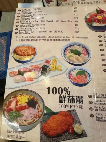 《CP值高质日本餐厅》今日是一号风球,正当外出工作遇上大雨滂沱,正想避雨之际,无意中经过门口顺便看看午餐🍱,睇到午餐餐牌精选选择很多(鱼生饭、杂锦番茄乌东、寿司定食、咖喱饭、叉烧拉面…等,价钱实惠。内部装修像是有些年份的普通的日式居酒屋,不过干净企理,坐位舒适。对面的食客叫了一客杂锦天妇罗 ;旁边的食客叫了一份杂锦刺身配荞麦面(用鹌鹑蛋)拌面,感觉很新鲜,下次也想试试。今日先试吓寿司饭定食($68,未加一),因为set A1,通常都系受欢迎的。试食之后觉得味道正宗,犹如置身日本旅行的小店,感到惊喜大满足。谢谢 !谢谢 !谢谢 ! 这样美好的偶遇!下次会试日本蚝咖喱饭或者天妇罗😋
