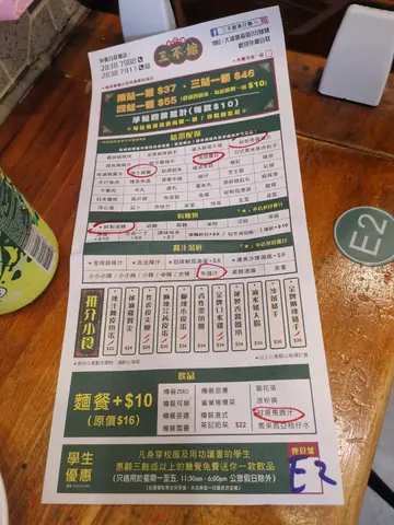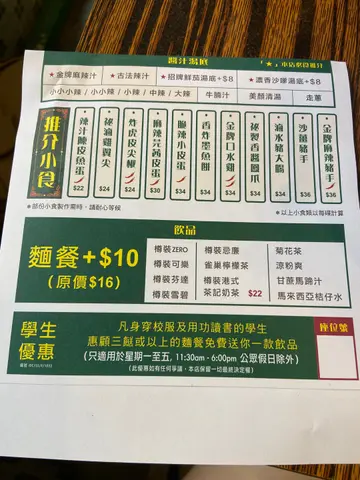 今日朋友带咗我去位于大埔嘅人气车仔面店👀到达时大概系一点左右,餐厅门口有条人龙,大概等咗15分钟终于入到去啦😍餐厅门口有点餐纸同埋marker供食客喺排队嘅时候拣定食乜,入到去一纸就落单成功~好有速度!餐厅入边有好多旧时嘅香港海报、招牌、装饰等等,等紧嘢食嘅时候好多嘢可以望😍三𩠌车仔面(💰$46)|😋:4.9/5拣咗酱烧猪颈肉、瑞士鸡翼同埋卤水鲜猪大肠😋鸡翼同埋猪颈肉各两嚿左右,猪大肠都有几旧㗎~面底拣咗河粉,汤底就拣咗要加💰$8嘅浓香沙嗲汤底😋简直系惊喜至极😍😍唔系讲笑,佢又真系做到浓香嘅沙嗲,浓到每一条河粉都挂到汁😋猪大肠肥美,唔会有怪味~猪颈肉大大嚿肥瘦适中,又有油香味🤤瑞士鸡翼就不过不失~食咗两啖见到舖头有自家制辣油,即刻落咗几滴落碗面度。舖头嘅辣油真系唔系好辣,但系非常香口,劲正!值得一试呀👍🏻