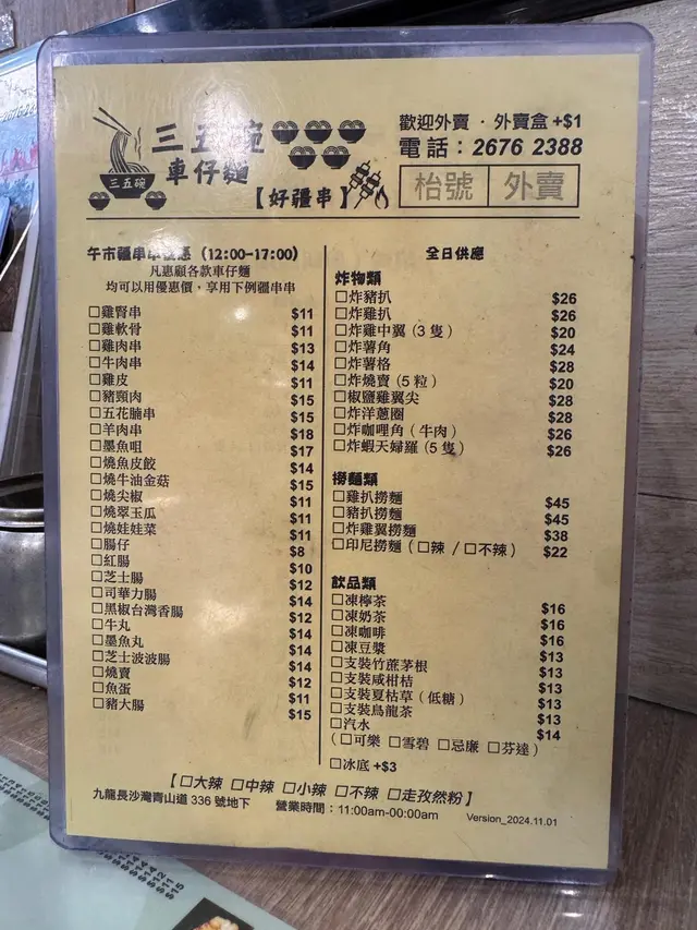 !餐廳主打車仔麵,但也有飯餐。更加猜不到的是有串燒供應,食物種類多元化。