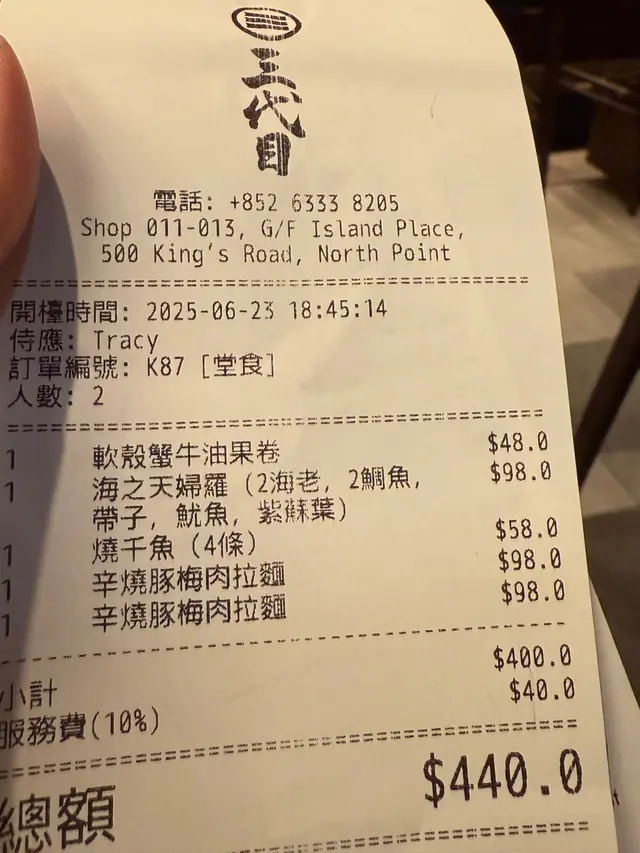 同朋友喺北角港運城搵食,試咗呢間「三代目」。一入去就覺得幾舒服,樓底夠高,裝修有種簡約日式格調,坐低傾計都唔會太嘈。今次叫咗三樣嘢,樣樣都幾有水準:鹽燒牛舌丼 ($108):呢個幾有驚喜!牛舌燒得啱啱好,表面帶少少焦香,咬落去爽彈得嚟唔韌,鹽燒味簡單但夠突出。鋪喺熱辣辣嘅白飯上面,簡簡單單已經好滿足,份量對得住個價錢。壽喜牛肉鍋 ($268):凍凍哋天時食呢個真係啱晒。個鍋份量幾足,牛肉片切得薄,煮完保持到嫩滑,吸咗甜甜哋嘅壽喜燒汁好入味。配料有鮮冬菇、秋葵同滑豆腐,煮耐咗都唔爛。最正係個湯底,甜鹹度平衡,唔會死甜,食到尾聲用嚟撈飯都仲得。海老天婦羅 ($78):即叫即炸,上枱仲熱辣辣。炸粉好薄脆,咬落「索」一聲,入面嘅蝦肉爽口彈牙,冇雪藏味,證明幾新鮮。點埋旁邊嘅蘿蔔蓉天婦羅汁,更提鮮。總結: 如果想喺港運城搵間坐得舒服、食物穩陣嘅日式餐廳,三代目係個唔錯嘅選擇。特別係個鹽燒牛舌丼性價比幾高,壽喜鍋夠暖身又夠飽肚。服務都幾好,上菜速度合理,會考慮再嚟試佢哋其他丼飯。…查看更多