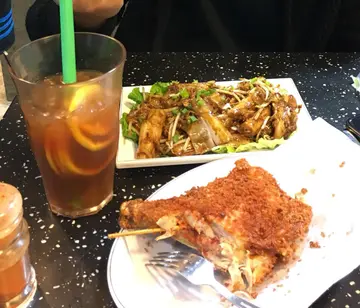 由细到大我都好钟意食鸡髀,直至出现了三多鸡髀,我真系疯狂了,试了很多分店,水准都保持一致,今次经过筲箕湾,忍不住又要食了,筲箕湾是主店,店内有几张枱,堂食都坐得舒服,除了炸髀,还有很多嘢食,有捞公仔面,意粉,台式饮品,最特别的是豉油肉碎炒肠粉,等我试吓先鸡髀一如既往炸得很出色,我食了这么多次,都没有出现不熟的情况,因为这么大只鸡脾,最难控制的就是火候,鸡髀外面铺满面包糠,外脆内嫩,很出色。豉油肉碎炒肠粉,炒得好出色,有镬气