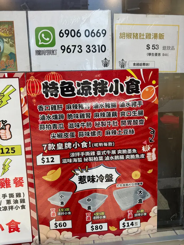 [灣仔良心手撕雞飯🐓] 2Rachel4等级22023-02-02419 浏览 关注 #confidante_foodblog灣仔覓食涼拌手撕雞飯+胡麻醬 $35(學生價)送紙包飲品一包味道:🌟🌟🌟🌟回頭:🌟🌟🌟🌟一拎上手feel到個飯盒好重,打開左個飯盒之後,真係好足料。🫶🏻完全唔使驚唔夠飽,如果仲係唔夠飽嘅,舖頭係有提供到免費加大個飯架~🫣呢個價錢仲送埋嘢飲真係冇嘢好挑剔,啲雞雖然唔係嫩,但一定唔係嚡!好難得喺學校附近,搵到間唔伏又抵食。佢哋邊食邊讚,都話會再幫襯!🪬服務態度 :🌟🌟🌟🌟🌟好值得一提嘅係今日我同同學去買飯嗰陣時,本來老闆係唔知我哋其中一個同學係學生,所以開頭係收咗$40。事後佢知道我哋係學生之後,即刻俾返$5佢。真係好老實!環境:🌟🌟🌟🌟…查看更多以上食记乃用户个人意见 , 并不代表OpenRice之观点。赞好分享[灣仔良心手撕雞飯🐓] 三寶手撕雞 https://s.openrice.com/QrLT0YhP700检举 张贴 评分4味道4环境4服务4卫生4抵食用餐途径堂食