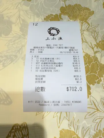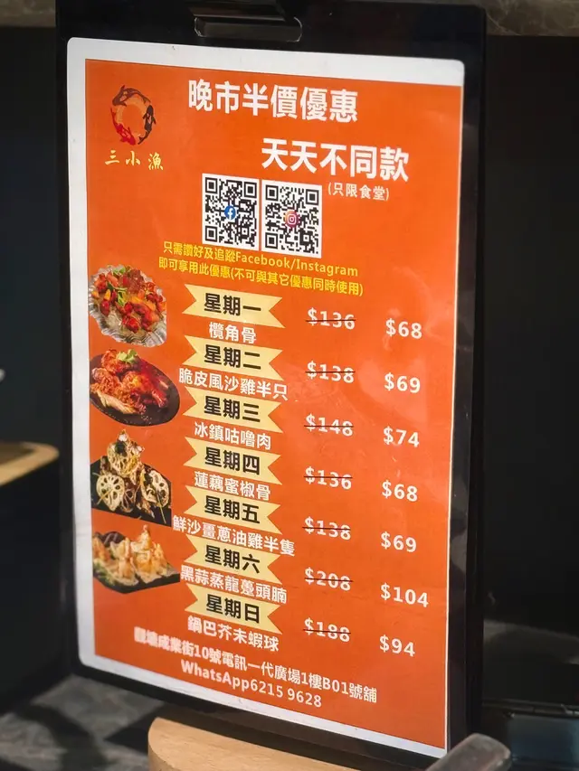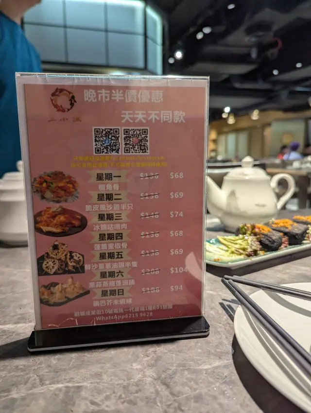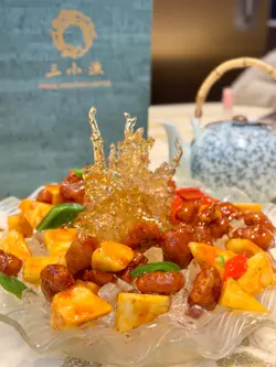 晚市聚餐同屋企人试左多款煲仔菜、冷盘、甜品, 味道有质素, 最惊喜系每日晚市都有不同主打菜式做半价, 食完最后仲可以玩转转抽奖, coupons 留番下次用, 唔怪之得晚市都满座. 我哋去𠮶晚啱啱系🉐 锅巴芥末虾球(原价$188 → 半价$94) 虾球外脆内滑, 芥末微呛唔抢味, 底层锅巴香脆 双冬羊腩煲 $328汤底好香浓, 羊腩软腍无膻味, 点埋腐乳酱, 正. 加左马蹄增加爽脆口感同减少燥热. 枝竹煲得软腍吸汤. 仲有一篮生菜, 食完成个人暖哂冰镇新鲜菠萝咕噜肉 $148每枱都有一盘, 呢度signature. 酸甜开胃, 糖雕摆盘好抢眼超吸睛, 打卡一流蜜椒莲藕片 $48莲藕片切得薄身炸后爽脆似薯片, 蜜椒味道微辣带甜蜜, 仲有少许苦瓜香味, 系好有特色冷盘啫啫芥兰煲 $88上黎仲冒住白烟滋滋作响, 芥兰用肉碎炒得惹味, 好岩下饭竹炭黑腐豆腐$72炸得外脆内嫩, 咬开外黑内雪白嘅色差好fancy宫廷枣皇糕(6件)$68口感软中带Q, 枣香突出甜度刚好桃胶炖手工菊花豆腐 $48显刀工一道, 豆腐切成菊花在桃胶糖水上浮沉. 用左滑嫩百福豆花茶位 $8位茶价唔算贵, 欣赏有菊花茶选, 咁晚上都唔怕饮完茶浓瞓唔好. 而且花香清雅, 解腻下火配羊腩煲刚刚好@threeminnows.hk九龙观塘成业街10号电讯一代广场1楼B01号舖 …查看更多