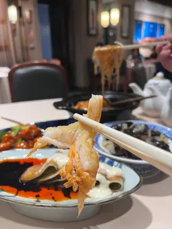 铜锣湾利舞台广场近年开了不少食肆,最常人流集中的楼层,反而是其中一两间做得认真、值得一吃的。三希楼便是其中之一下著黑雨,傍晚六点半抵达,餐厅八成满,尚有几枱熟客自携红酒,气氛不俗。亦有两三枱吃火锅,配料看来讲究,下次或可一试。今次重点是虾 。瓦罉焗胡椒海虾,未上枱已闻其香。虾非小只,虾膏明显,壳酥香,脚脆可食,虾头慢慢啜尤为惹味,辣劲适中,不呛。此菜一出,邻枱纷纷望过来啫啫虾酱通菜煲亦出色。选用最嫩的菜芯,粗纤维全刨去,虾酱香浓,不腥。虾干用料大方,非坊间细碎货色,反像家中自留的九节虾干。蒜片牛仔肉粒属招牌之一,做得干爽无油,蒜片香脆零苦,牛仔肉不韧,调味亦准,适合佐酒。青椒清香鱼,鱼肉厚切,有质感,非一般火锅用薄片。汤头带微酸,有点像四川水煮鱼的清爽版本,加中式面条更觉过瘾。饭后甜品点了香滑蛋白杏仁茶,尚可;红豆椰汁糕略为平实。三希楼装修不俗,菜式有心。厨房不怕费工夫,亦愿用好材料,在这区已属难得,值其所值。…查看更多