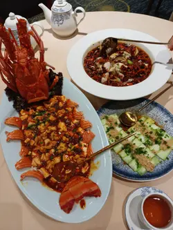 銅鑼灣利舞臺廣場近年開了不少食肆,最常人流集中的樓層,反而是其中一兩間做得認真、值得一吃的。三希樓便是其中之一下著黑雨,傍晚六點半抵達,餐廳八成滿,尚有幾枱熟客自攜紅酒,氣氛不俗。亦有兩三枱吃火鍋,配料看來講究,下次或可一試。今次重點是蝦 。瓦罉焗胡椒海蝦,未上枱已聞其香。蝦非小隻,蝦膏明顯,殼酥香,腳脆可食,蝦頭慢慢啜尤為惹味,辣勁適中,不嗆。此菜一出,鄰枱紛紛望過來啫啫蝦醬通菜煲亦出色。選用最嫩的菜芯,粗纖維全刨去,蝦醬香濃,不腥。蝦乾用料大方,非坊間細碎貨色,反像家中自留的九節蝦乾。蒜片牛仔肉粒屬招牌之一,做得乾爽無油,蒜片香脆零苦,牛仔肉不韌,調味亦準,適合佐酒。青椒清香魚,魚肉厚切,有質感,非一般火鍋用薄片。湯頭帶微酸,有點像四川水煮魚的清爽版本,加中式麵條更覺過癮。飯後甜品點了香滑蛋白杏仁茶,尚可;紅豆椰汁糕略為平實。三希樓裝修不俗,菜式有心。廚房不怕費工夫,亦願用好材料,在這區已屬難得,值其所值。…查看更多