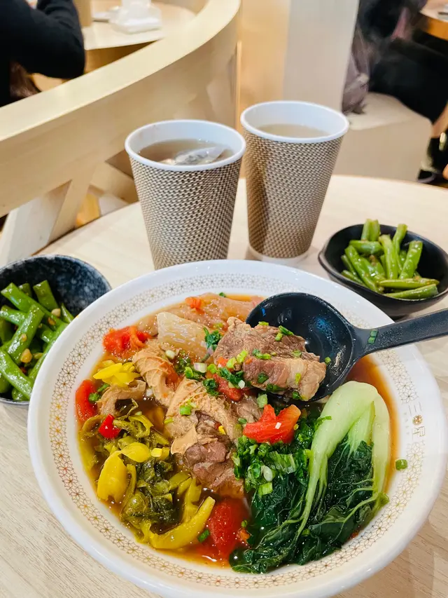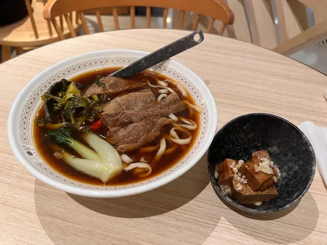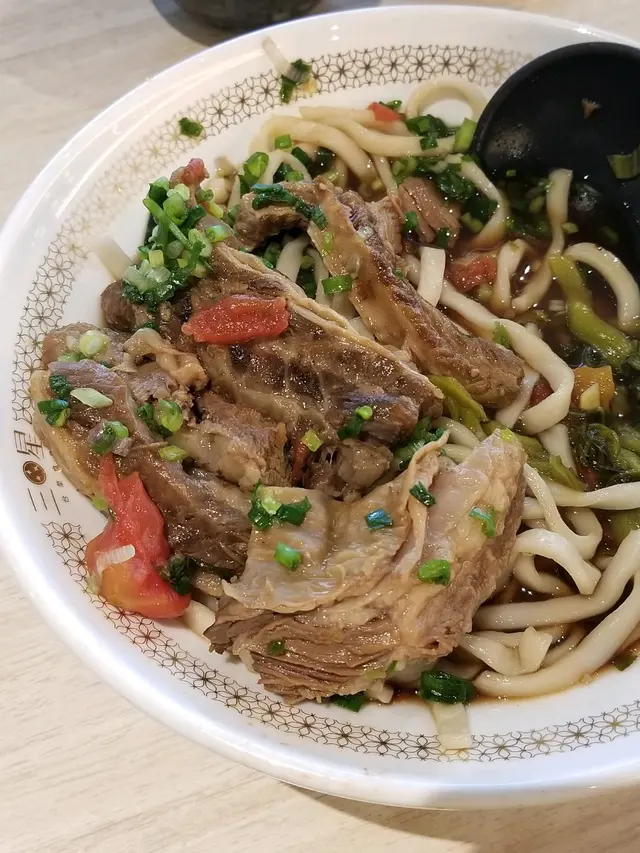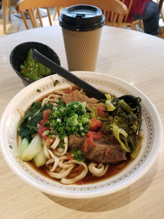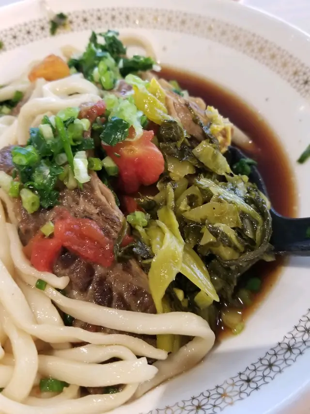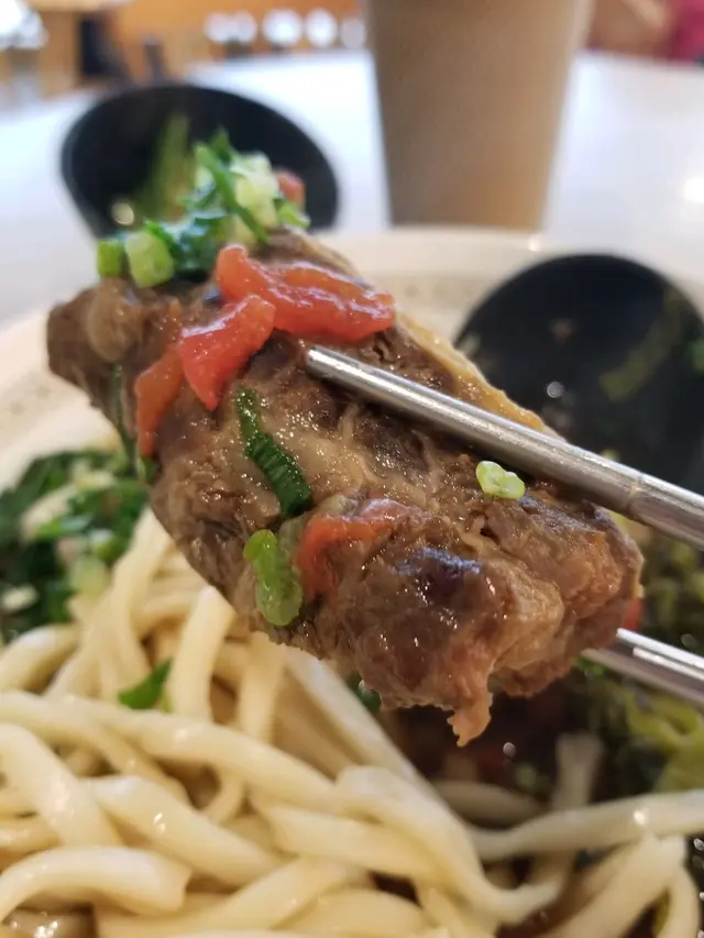 紅燒牛肉麵 (蕃茄湯底, 粗麵, 多蔥)