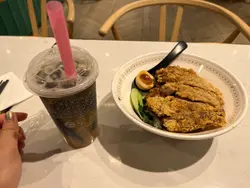 其实每次黎食都觉得唔值得禁贵同埋如果无心做好就不如算啦。。。。每次黎食都只因唔洗等位,纯粹赶时间填饱肚就算2个人食晚餐,晚饭高峰时间一枱客都无。。。。除左出餐快得惊人之外,真系无其他可能咩都整定晒挂。。。所以快啰散叫左个盐酥鸡,唔香唔脆,油淋淋,真心难食。。。 $622杯珍珠饮品,但全部d珍珠系痴埋一pat pat2个面还算可以,无特别,但一个餐连小食野饮盛惠$13x。。。。质素同价钱系唔成正比。。。真心唔值