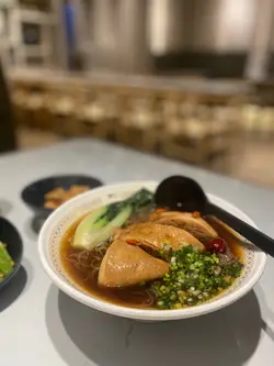 我们于1/4(六)约下午一点十五分左右到达餐厅,内里客人不多,当然心谂周末午餐时间,为何咁少人🤫餐厅用QR code 落单我们叫了2个午餐。❶鲍鱼花胶炖鸡汤面线配涷大红袍蜜桃茶($138):鲍鱼有点硬,虽然是汤面线但面完全没有松开,一大饼的。❷台式盐酥鸡冬粉(牛骨汤底)套餐:盐酥鸡炸得还行,有很多黑蒜,冬粉ok,汤底很浓🤯卤豆干:有很多黑蒜在豆干上面,反而吃不到豆干的原味,吃完个口「兴哂」🥵热桂花乌龙有一位侍应的态度不是很好,其他都还可以😌其实没什么服务态度,还要加一😢间中还有垃圾车经过,可能令食客印象不是很好