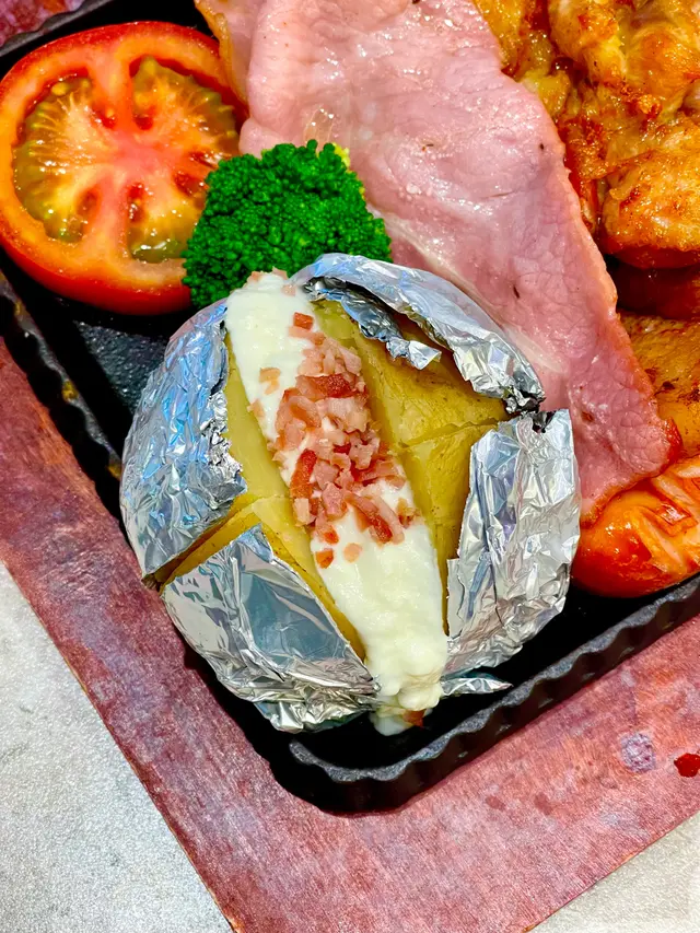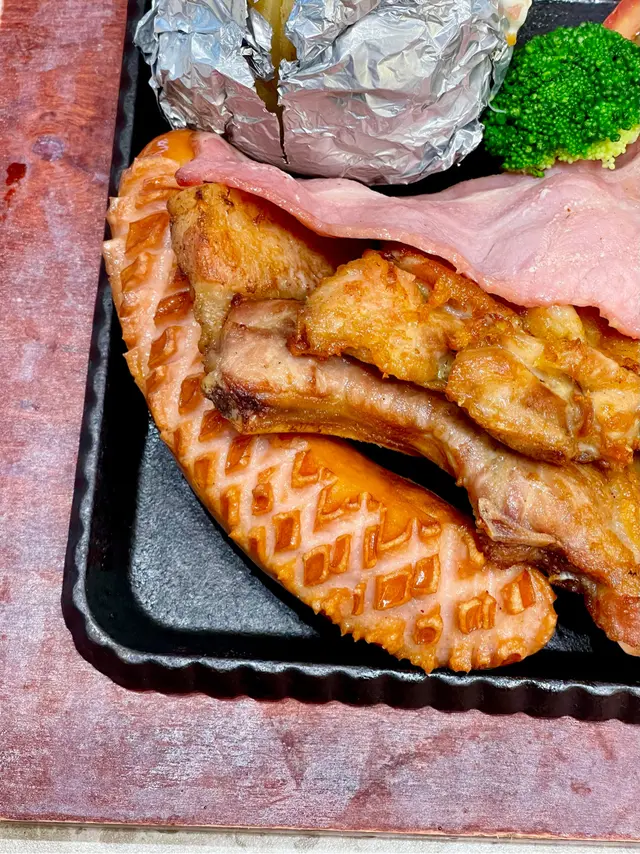 呢間新派茶記喺正AIRSIDE地鐵出口,早午下午茶晚餐有唔同菜式供應,集齊港式粉麵飯、常餐、三文治、咖喱、鐵板、小菜、炸物、小食、飲品等,老少咸宜,價格親民,地點方便,座位闊落,空間感十足,服務態度友善,經過可去。大地推介鐵板餐,四款選擇,美式雜扒包含超大條外脆內Juicy嘅腸仔、嫩滑連骨豬扒同啖啖肉嘅雞扒,另外搭配多醬連同煙肉碎嘅香滑焗薯,大滿足。唔想食焗薯都可以叫薯條,另外仲有牛架、牛扒等供應,見隔離枱叫個樣都幾吸引㗎。晚市套餐提供各式各樣小炒,個人最鍾意馬拉盞蝦乾肉碎通菜煲,勝在無渣且入味,鹹香味十足,配飯一流。XO醬西蘭花炒鳳尾蝦就偏清淡,菜咬落爽口,蝦嫩又鮮、菠蘿咕嚕肉酸甜度適中,外層唔算好後,配上菠蘿更開胃。Read More