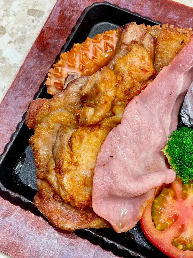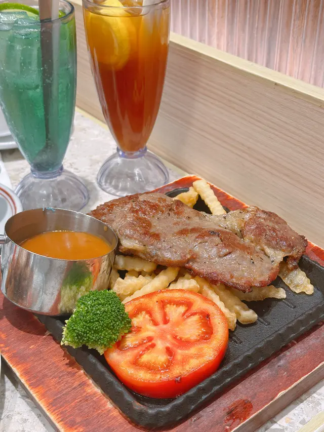 三點三雜扒餐🥩 $108雜扒餐有齊豬扒、雞扒、司華力腸、煙肉,一次過滿足多重願望!配菜可以揀薯條或者焗薯,我今次就揀咗邪惡啲嘅薯條,即炸熱辣辣真係好好味呀!另外呢個餐仲附送咗日式粟米湯,香甜濃郁大人細路都啱飲!焗豬扒飯🐷 $75佢哋嘅焗豬扒飯係蛋炒飯底非常有誠意,豬扒算係厚切又大塊,絕對係回憶的味道好好食!咖哩雞扒飯🐔🍛 $73估唔到咖喱同雞嘅份量比白飯仲多,非常足料!咖喱唔會太辣太油膩,好惹味!仲有唔少紅蘿蔔同埋薯仔配菜,感覺上營養都均衡啲😌😌三眼仔雞扒飯🍳$82唔知呢度有冇做gym嘅朋友,每餐飯都記住自己攝取嘅蛋白質份量🙈呢一個三眼仔雞扒飯就啱晒啦,蛋白質滿滿!另外想講吓呢度嘅特飲都好選擇,例如係黑牛、紅牛、薄荷朱古力等等,款款都好特別!今次就揀咗忌廉美祿暴龍🦖,埋忌廉一齊飲,口感特別順滑好飲!Read More