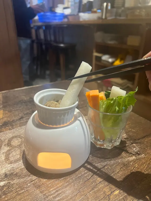 我和閨蜜一起去享受了一頓美味的一餐🥘。這家餐廳選擇了傳統的日式木系風格裝修,並播放著日本音樂,讓我感覺彷彿置身於日本的一間居酒屋。食物的種類非常豐富,從刺身、熟食、串燒到拉麵應有盡有,而且還有一些創新的菜色。🏮我第一次品嚐到了前菜中的野菜條配鯷魚醬,這個組合非常特別。蔬菜的鮮甜味與鯷魚醬的鹹鮮味相互平衡,使整體的味道更加和諧。🥗餐廳的地理位置也很方便,離地鐵站只有幾分鐘的步行路程,而且門口還有停車位。餐廳的裝修以木材為主,營造出濃厚的日本居酒屋氛圍,店內的空間寬敞、整潔,上菜速度也很快。服務員態度很好,非常有禮貌。🏡…查看更多