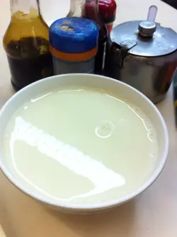 其实大部份人都在店外排队买粢饭, 堂食反而一入去就有位!我想吃那些饺子什么的都己经没有供应了, 我又未吃午饭所以便叫了个豆腐客饭。比较油, 味道也比较浓, 饭也不是特别大碗, 卖四十多元其实也不很便宜。淡豆浆反而不错, 喝到底有点点豆渣, 几足料。吃到一半, 见有外文报纸记者来店做访问, 其中一位熟客当天已来店两次, 更是一家三代都光顾过一品香; 对于老店结业, 当然是觉得可惜啦。虽然我对其食物的观感一般, 一场来到还是想买个粢饭, 所以之后便出去 (店里没得点), 甘愿被当景点排队去。由于包粢饭的阿姐摩打手地包著, 所以也没有等太久。粢饭拿到回家还是暖的, 味道没有什么突出之处 (我要求不下肉松), 糯米饭也有点硬。这手字写得很好呢!一品香一去, 在渣甸街要吃上海菜还虽然有另一家, 但始终这里在铜锣湾还算是价钱 OK 的食店, 对一些人而言其实又少了一个选择