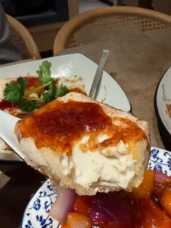 酸辣汤云吞(5粒)接下来是酸辣汤云吞,汤底酸辣适中,带有微香。云吞的皮薄馅多,内馅有鲜虾与猪肉,口感有层次。酸辣味让人食欲大开,非常开胃。