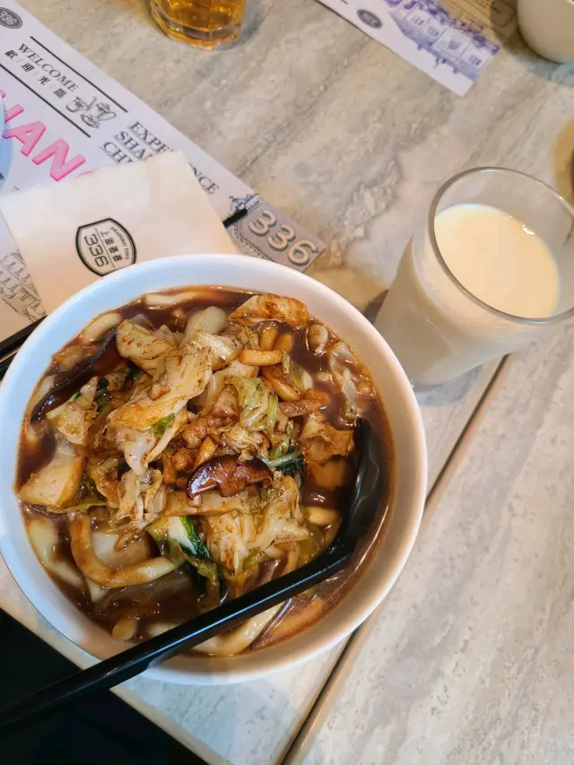 今日放假一個人,訓醒之後都2點啦!買左咁多日外賣返屋企食咁今日就落去樓下食啦!見到上海婆婆入面都幾多客人食緊下午茶,咁就又試下啦!坐低望下個menu,都幾抵食,42蚊重包一杯豆漿,之後我就叫左個上海湯粗麵啦!等左無耐就有得食啦!碗麵都算係幾大碗而且足料,有椰菜,白菜仔,冬菇同埋肉絲,粗麵食落去好有口感,而且麵質都好彈牙,味道就剛剛好,湯有水準,湯夠濃夠熱再加少少豆辦牆就完美啦!最後飲埋杯豆漿就埋單走人啦!查看更多