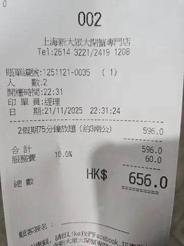 餐厅:上海新大众大闸蟹专门店 (黄大仙)地址:黄大仙飞凤街46号地舖最近去咗东南亚旅行半个月,一返到香港除咗挂住港式茶餐厅之外,就喺打边炉同放题😋,而咁啱就比我喺黄大仙揾到间性价比极高、晚晚都坐爆棚嘅放题餐厅——上海新大众大闸蟹专门店,星期一至四平日最平$98加$10酱料费同加一服务费就食到90分钟放题,而我今次就叫咗最贵嘅$168「极享受」120分钟放题,就算我星期日去食埋单都喺$218一个人,真心抵到烂😍原来餐厅开咗8年,前排仲喺同区开埋分店,本身主打大闸蟹🦀,最近新推出咗放题,有齐鸡煲、羊腩煲、烤鱼、火锅、串烧、炸物、一品料理,同最特别嘅蟹粉同鹅肝菜式任食🤤,仲有几十款啤酒汽水同韩国饮品任饮🍺,而四个人以上订座指定套餐仲送龙虾鲍鱼海鲜拼盘,难怪晚晚都大排长龙,唔订位我谂都真喺无机会食得到😂坐低无耐先叫咗个奇味鸡煲,喺印尼峇里岛食完嚡熠熠嘅鸡肉,返到嚟就食到嫩滑惹味嘅鲜鸡件真喺一大乐事🐔,鸡嘅份量都几多,本身谂住食埋羊腩煲最后都费事怕食唔晒所以无叫到,边食鸡煲嘅同时就喺点餐纸叫咗一堆串烧同蟹粉美食嗌咗牛肉串、炭烧鸡腿肉、烧鸡肾同羊肉串🍢,串烧偏向浓味同埋加咗孜然粉,放入口依然热辣辣🔥,食完最啱饮返罐生百事可乐解渴同消吓气🥤。蟹粉小笼包充满肉香同肉汁,不过唔喺好食到蟹粉,反而蟹粉扒时蔬同瀑布蟹黄金捞面就比到我好大惊喜,蟹粉新鲜而且够多,食落每啖都有满满嘅蟹粉香味,仲要真材实料因为我食到一粒仔蟹壳😂,可惜太饱无机会试埋蟹黄鹅肝炒饭,决定下次一定要过嚟试吓值得一赞嘅喺炸物一啲都唔马虎,食咗个黄金炸馒头同吉列广岛蚝,两款都喺即叫即炸,入口松脆香口,广岛蚝仲要爆汁💦,平时钟意食炸嘢嘅人,一定要叫返一两样嚟试吓👍虽然环境细细,座位之间有啲逼夹,但我食完之后终于知道点解呢度每晚都咁多人帮衬😎…查看更多