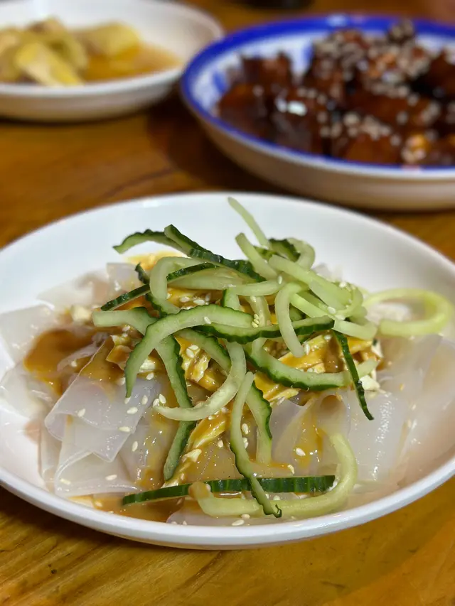 依間上海菜朋友介紹雖然我收工由太子站行15分鐘如果奧運站行就幾分鐘不過我走果陣好近中匯街嘅巴士站1分鐘行上樓梯就到 🔸雞絲粉皮$60香濃花生麻醬味配青瓜絲,好清新🥒雞絲嫩滑,粉皮透薄,前菜必叫👍🏻🔸酸辣湯(小)$68一上酸辣湯見到一D都唔小忍唔住問多次個酸辣湯係咪小份量多又足料,兩個人飲好似飲極都飲唔完酸度適中,辣味唔重,可以落胡椒粉調一調味🔸小籠包(4粒)$48皮厚度適中,夾上黎唔易穿,湯汁保持住熱辣辣🔥🔸乾煸四季豆$88炒得幾乾身,好多肉碎,餸飯一流🍚🔸豆沙窩餅$78必食‼️個皮脆卜卜,好似春卷皮咁脆豆沙唔太甜,好味👍🏻…查看更多