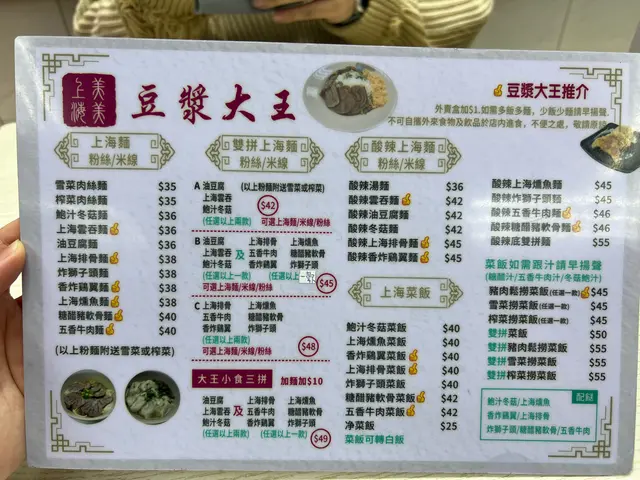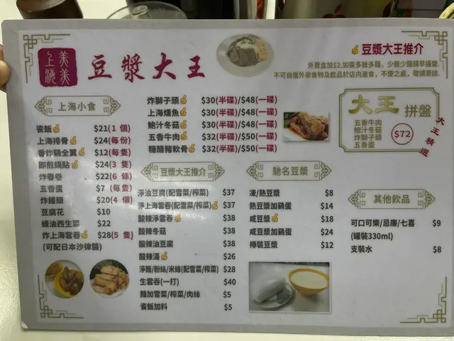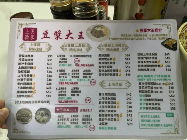 食完蘭州拉麵,行咗一陣商場,跟住就嚟到第二站既呢間上海美美豆漿大王,午餐時段到站,坐滿食客,要搭枱先有位坐,坐低睇下個餐牌,最後決定點咗呢個酸辣湯雲吞同埋煎鍋貼。等咗一陣就有得食,酸辣湯雲呑$38蚊好大碗,有d比佢嚇親,先試一啖酸辣湯,夠味夠辣,好足料,雲呑就味道唔太啱胃口,煎鍋貼唔爆汁,餡肉都算夠味。整體有點失望。[米饭]口味:🥚🥚🥚[薄荷]环境:🥚🥚🥚[服务铃]服务:🥚🥚🥚[糖果]性价比:🥚🥚🥚…查看更多