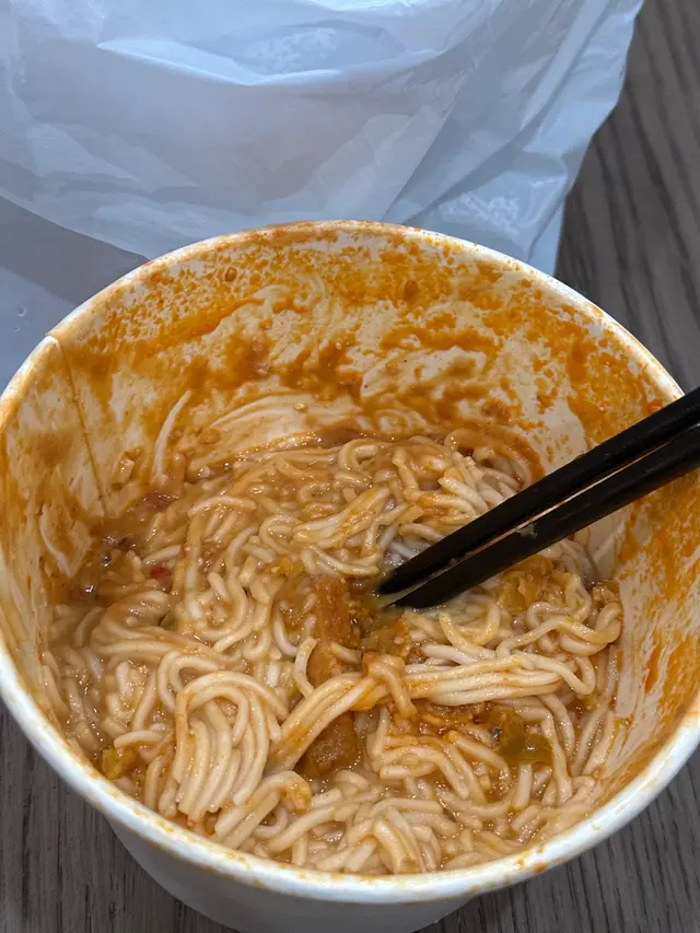 外賣一個豬扒擔擔麵,沒有分湯,相信廚師也會知道擔擔不分湯外賣後的結果吧!麵變成糊狀,淋曬,這麵家是這樣求其嗎!分湯可以另加費用的,現在差不多所有的麵店也會詢問分不分湯吧!這樣的出品怎樣能品嚐你店的食物查看更多