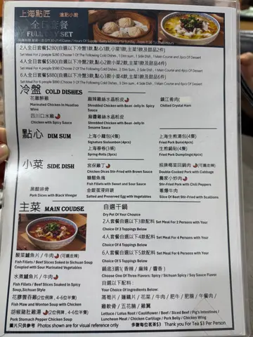 最后一天假期后,逛得累了,路过这家上海菜馆,有$280的二人套餐,性价比不错,有小食、点心、主菜及甜品,而且差不多满座,立即入座点餐吧!小食选了镇江肴肉,是我们喜欢的上海菜式,喜欢高汤配合爽口咸肉,冷藏成结实的啫哩状,入口即溶,又变回汤汁,混着肉在口腔内细味,不会太咸,是开胃之选。点心选了小笼包,真的皮薄、多汁、馅多,上菜时热气腾腾,稍微等一等才夹起,一口一个,由于皮很薄,所以夹起来的时候要小心避免穿皮,考考自己的筷子功!主菜选了回锅肉,腩片半肥瘦肥瘦,菜炒得爽口,带微辣,还有青红椒、干辣椒帮助挥发香气,大大碟份量足,吃得很爽!水煮鱼有惊喜,卖相吸引,令人食欲大增,鱼片口感嫩滑无骨,再加上芫荽、芽菜、薯粉、莴笋、云耳,配料丰富!点了小辣,拌白饭吃,又香又麻痕过瘾,很丰富很滋味啊!最后,甜品点了高力豆沙,上菜时还有一阵热热的雾气。十分喜欢外层空气感面粉,一咬下,摧毁这个软呼呼的面团,超邪恶!豆沙蓉馅软滑香甜,是口感与味蕾的享受!误打误撞的吃上一顿传统上海美食,非常满足,套餐$280,每位茶位$3,吃得好味又够饱,超值了!…查看更多