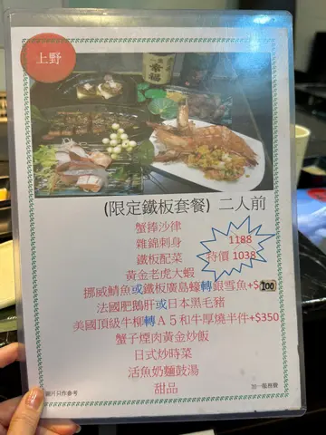 终于来打卡上野铁板烧专门店啦!坐在板前位置真的太值了看着厨师行云流水的烹饪过程简直就是视觉盛宴➕味觉享受双重暴击💥💛我的最爱TOP2💛🦐黄金老虎大虾虾肉Q弹到爆炸!裹上金黄蒜蓉一口下去鲜甜多汁 连虾头都炸得酥脆🧈法国肥鹅肝外焦里嫩到不可思议!入口即化搭配烤面包和特调酱汁 幸福感爆棚🍱二人套餐超丰富:▪️前菜三连击:蟹棒沙律+杂锦刺身+铁板配菜▪️海鲜盛宴:挪威鲭鱼皮脆肉嫩▪️肉食狂欢:美国顶级牛柳火候完美▪️主食王者:蟹子腌肉黄金炒饭锅气十足▪️暖心收尾:奶白鱼汤+日式炒时菜▪️甜蜜ending:雪糕甜品完美收官坐在铁板前看着食材从生到熟听着"滋滋"的烧烤声 香气扑鼻而来这种用餐体验真的会上瘾!📍上野铁板烧专门店⚠️建议提前预约位置哦!…查看更多