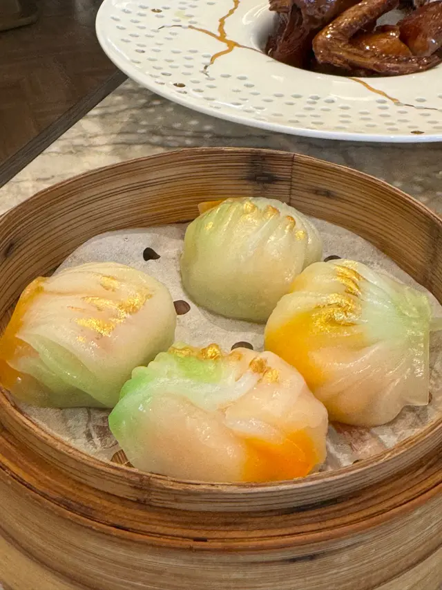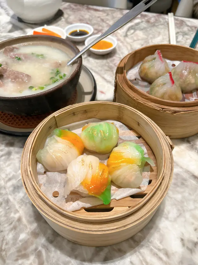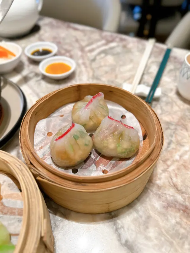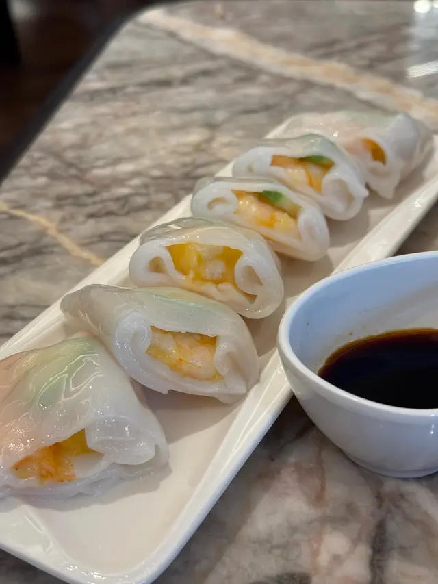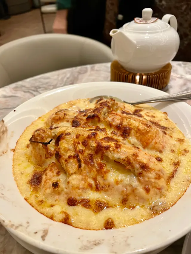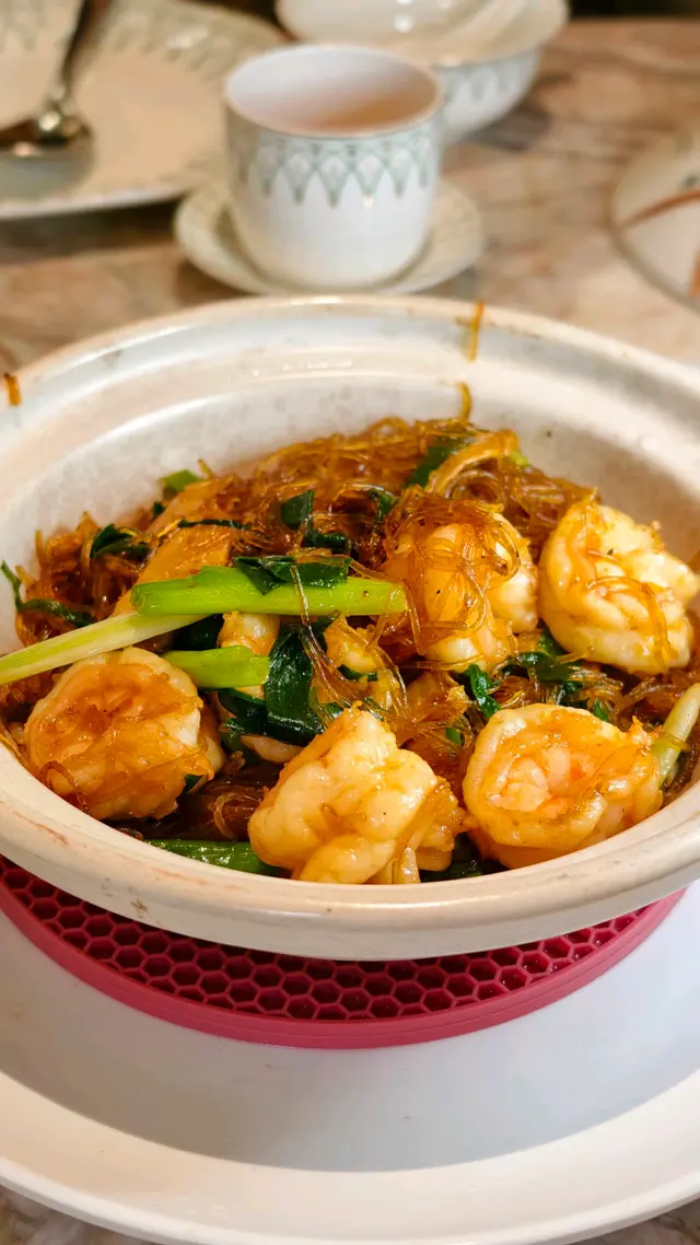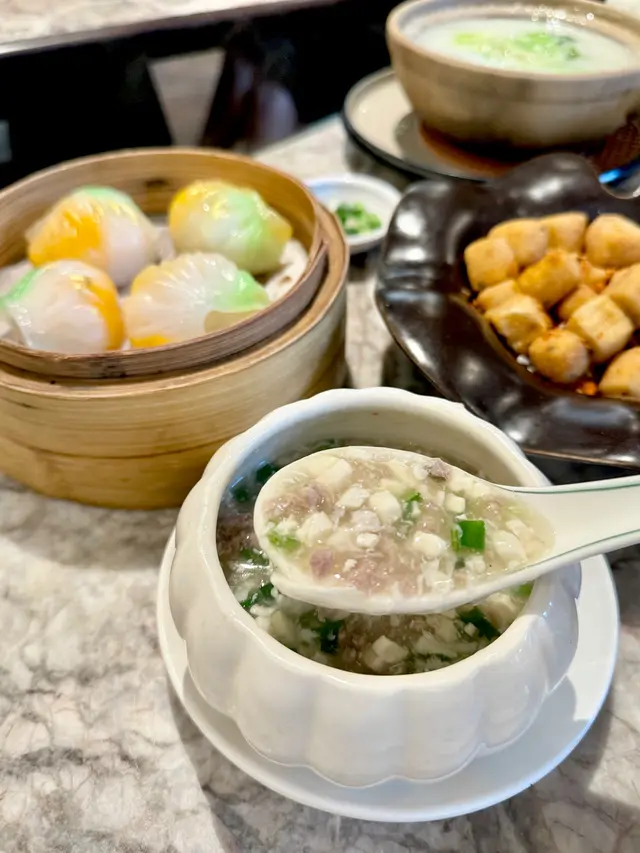 上陽樓取名靈感來自御膳房,融合了皇帝御膳房的設計, 粉綠色為主調, 配上清麗的壁畫,風雅脫俗, 環境相當舒適寧靜。 雪蛤水鴨湯 $78(位)熱湯清徹味濃,湯頭鮮甜,用料十足, 水鴨燉至綿軟鮮嫩, 滑捋捋的 雪蛤, 養顏又滋補, 女士摯愛的湯水。 冶味粉絲焗大蝦球$188(例) 大蝦球入口鮮味爽彈,啖啖濃郁惹味, 充滿鑊氣 , 粉絲吸收了 蝦汁的鮮香, 特別好吃 。鎮江肴蹄 (水晶肉)$88 江蘇鎮江傳統名菜 , 晶瑩剔透像水晶, 入口滑溜 Q 彈, 咸鮮十足。金蒜粉絲蒸大元貝兩隻 $96 厚身圓潤連殼大元貝, 表面鋪滿金蒜及粉絲, 香氣十足 ,元貝鮮味 滑溜, 加上金蒜香氣提鮮, 惹味開胃,粉絲吸收蔥蒜芳香, 特別滋味 好吃。芒果卷冰冰涼涼的芒果卷 , 外層煙韌柔軟,內餡是熟透的芒果粒及香滑的鮮忌廉, 每一口都是芒果的甜香, 香甜冰涼, 令人回味無窮。…查看更多