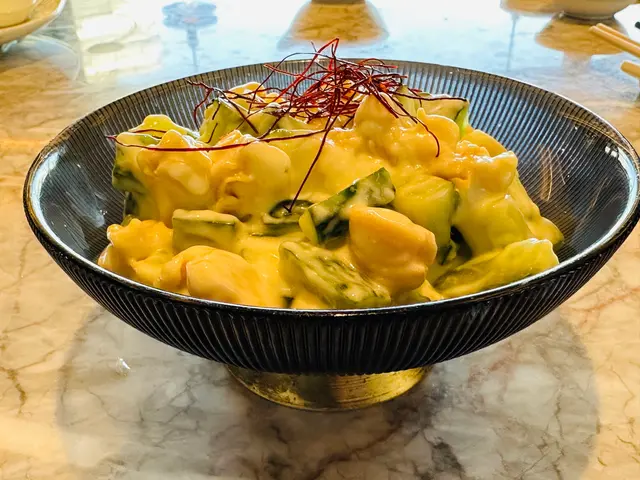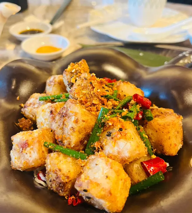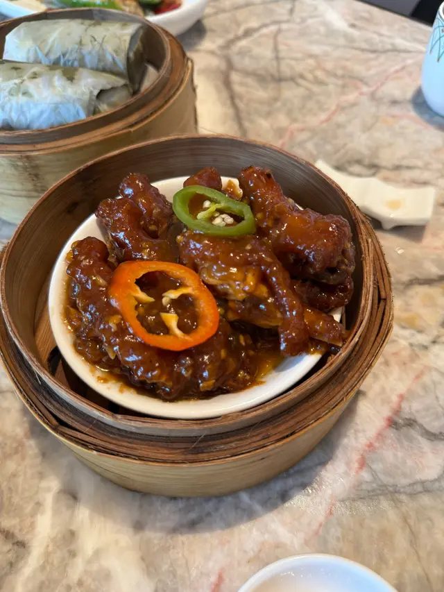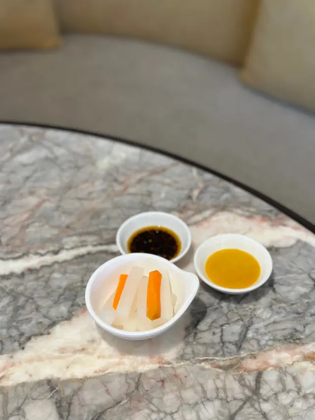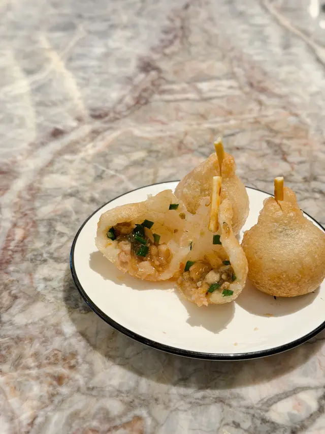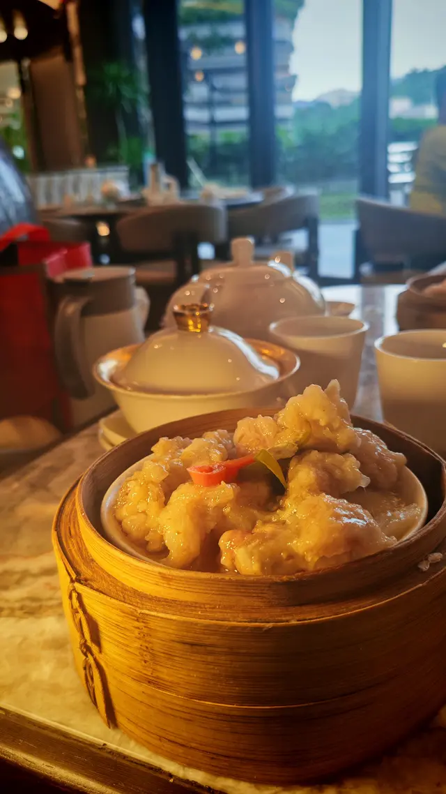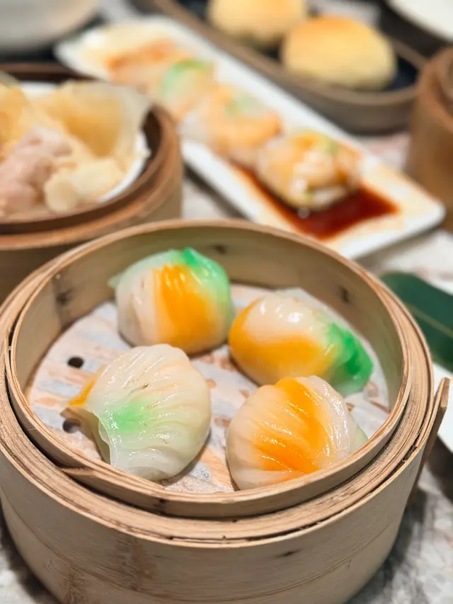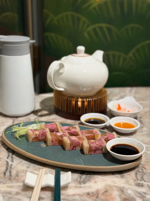 上陽樓取名靈感來自御膳房,融合了皇帝御膳房的設計, 粉綠色為主調, 配上清麗的壁畫,風雅脫俗, 環境相當舒適寧靜。 雪蛤水鴨湯 $78(位)熱湯清徹味濃,湯頭鮮甜,用料十足, 水鴨燉至綿軟鮮嫩, 滑捋捋的 雪蛤, 養顏又滋補, 女士摯愛的湯水。 冶味粉絲焗大蝦球$188(例) 大蝦球入口鮮味爽彈,啖啖濃郁惹味, 充滿鑊氣 , 粉絲吸收了 蝦汁的鮮香, 特別好吃 。鎮江肴蹄 (水晶肉)$88 江蘇鎮江傳統名菜 , 晶瑩剔透像水晶, 入口滑溜 Q 彈, 咸鮮十足。金蒜粉絲蒸大元貝兩隻 $96 厚身圓潤連殼大元貝, 表面鋪滿金蒜及粉絲, 香氣十足 ,元貝鮮味 滑溜, 加上金蒜香氣提鮮, 惹味開胃,粉絲吸收蔥蒜芳香, 特別滋味 好吃。芒果卷冰冰涼涼的芒果卷 , 外層煙韌柔軟,內餡是熟透的芒果粒及香滑的鮮忌廉, 每一口都是芒果的甜香, 香甜冰涼, 令人回味無窮。…查看更多