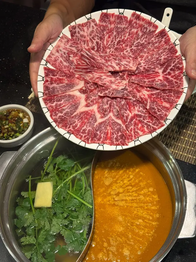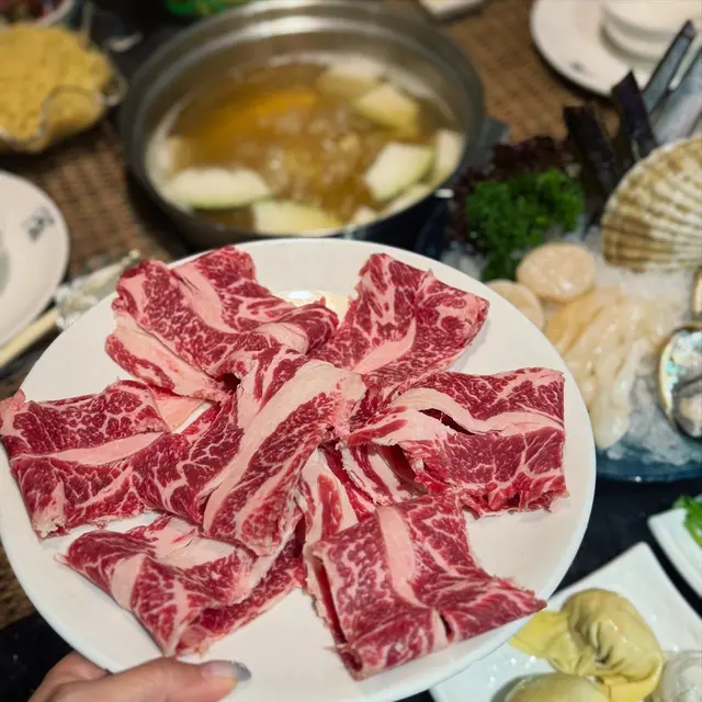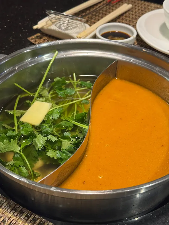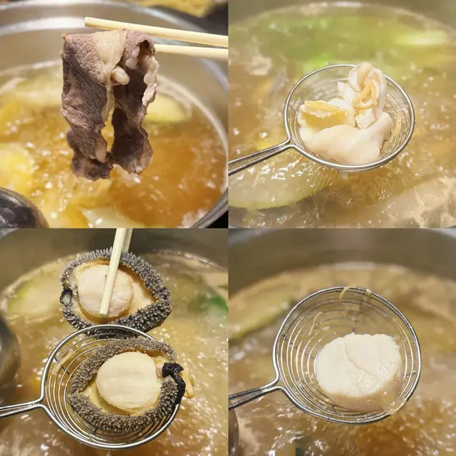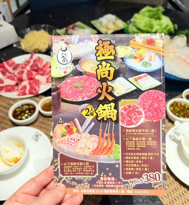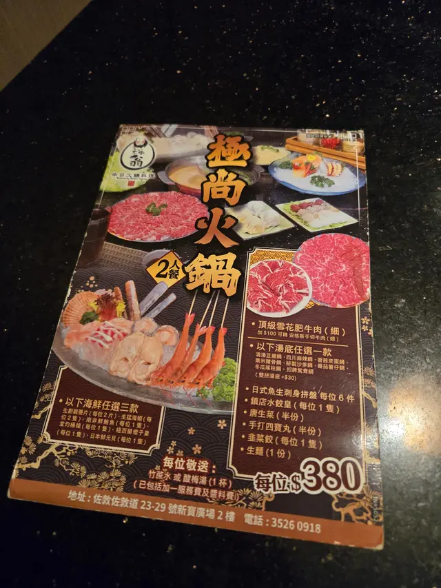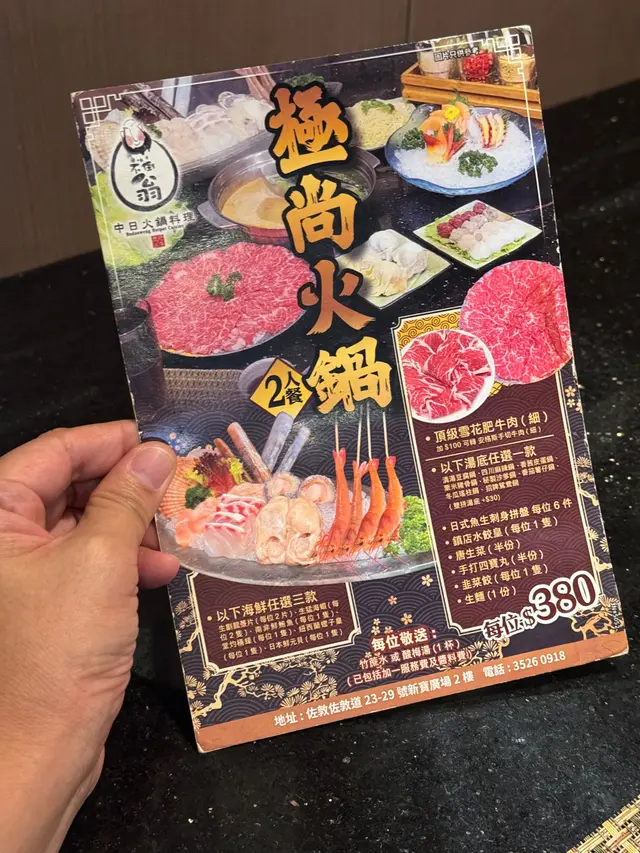 好耐冇食過打邊爐,搵到呢間食海鮮邊爐,嘢食好似幾高質,我哋order咗個二人餐,每位$380 ,包咗刺身拼盤,三款新鮮海鮮,火鍋配料湯底,每人一杯嘢飲,仲要茶介+1全包,價錢非常合理。先嚟個刺身拼盤,刺身有吞拿魚、三文魚、同埋八爪魚,三文魚好厚切肥美,吞拿魚同埋八爪魚都新鮮,質素好OK。跟住呢就開始食火鍋,我揀咗招牌鴛鴦鍋底,有芫荽皮蛋湯同埋沙嗲湯底。海鮮呢就一開始食芫荽皮蛋湯,食海鮮嘅鮮味。蟶子王好大隻,肉身好厚,超級爽嫩鮮甜,裙邊嘅部份好爽脆,拖一拖就食得。桶蠔好大隻,咬落去卜一聲鮑汁,鮮味creamy。南非鮑魚都好大隻口肉,最重要係一啲都唔韌,爽嫰爽嫩,好正。食完海鮮我哋就食頂級雪花肥牛,牛肉好靚,雪花均勻適中,唔會太肥冇得食,肉質軟嫩,牛味濃郁,沾上我自己調製嘅火鍋醬油好好味。手打丸有牛丸、鯪魚丸、蝦丸同埋墨魚丸,細細粒迷你版,一口一粒,每款都真材實料,爽彈爽彈。水餃同埋雲吞好有驚喜,特別係嗰隻鮮蝦雲吞,皮薄餡靚,個皮滑溜溜,裏面包住好多隻蝦,超級爽口,而且蝦味濃郁,似係海蝦。最後食埋啲菜同埋個超級爽口嘅生麵已經好飽好滿足。點知原來仲有個甜品送,係桂花杞子糕同埋椰汁馬豆糕,兩款都好清甜,食到飽晒食都唔會覺得腻。…查看更多