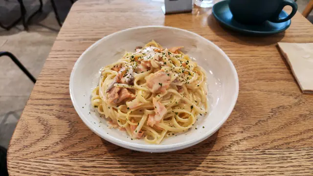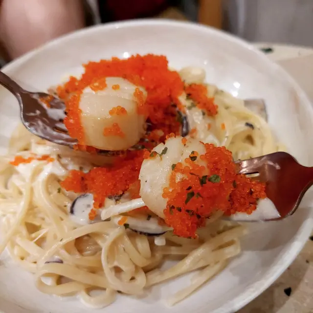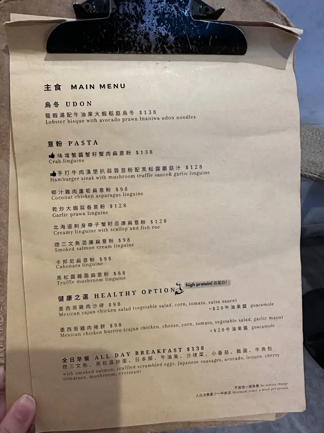 睇到介紹,意粉咖啡都好似唔錯就試試佢。咖啡係正常味,環境正常。然後意粉,難食。意粉叫左卡邦尼扁意粉 & 手打牛肉漢堡扒蒜蓉意粉配黑松露蘑菇汁。卡邦尼扁意粉默默地放左上枱,然後staff就走左,初頭以為係上錯,睇落聞落都唔似卡邦尼,就問一問確認一下係咩嚟,會唔會係上錯,佢反左下白眼,發出左一下幾重嘅呼吸聲,然後就返左去counter。見佢好似嬲嬲地,我仲以為係真係上錯所以要去問責,有少少緊張會發生咩事。原來佢係去睇一睇張單就返嚟,答我係卡邦尼扁意粉。心諗,你望住碟野都唔知係咩嚟,要睇下張單先知,咁我點會知係咩嚟😂然後食食下就醒起,我見過依款卡邦尼意粉,係同叮叮意粉一樣,但係叮叮好食啲,起碼叮叮都會用煙肉而唔係火腿。牛肉漢堡扒蒜蓉意粉配黑松露蘑菇汁一上嚟,依個睇得出係咩嚟,因為有塊漢堡扒,上面有pat黑松露。但淨係睇個意粉,同上面嘅卡邦尼不能夠話十分相似,只可以話係一模一樣。不過撈返黑松露係當然會唔同,就係卡邦尼加黑松露味。漢堡扒正常,但格格不入,唔明點解會咁設計。然後係無影相嘅,唔會想影啲求其整嘅嘢。店員態度就理所當然地差,唔知大家係唔係有咩心事唔開心,或者可能返工就會心情唔好。收左加一服務費,但唔知有咩服務。總括而言就係索然無味,餐飲無味,人情無味。完全體驗到間野係是但求其,除左喺宣傳方面十分之落力,睇唔到仲有啲咩位間野係有心做。…查看更多
