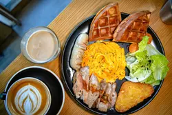 餐厅:不苦 (深水埗)地址:深水埗枫树街5A号地舖 虽则大家都知深水埗一带有好多消遣打卡一流嘅网红咖啡店同Cafe,但每次返团契经过深水埗呢间型到爆嘅Cafe——不苦都会俾佢吸引到🤩,除咗因为喺正枫树街同大南街交界,接近傍晚日落时份Cafe更加好似成为黑暗角落中嘅一点光明咁特别抢眼💡原来Cafe已经开咗3️⃣年,今年年初仲喺鲗鱼涌开咗分店,为嘅都喺想比香港人有一啲「Buffer」,可以喺压抑同繁忙之中得到一啲relax同chill嘅空间同时间☺️,坐低落嚟叹番杯精品靓啡、西日式料理同自家制甜品🍮✝️Buff全日早餐 $138呢个All Day Breakfast大部份食物同出面都好唔同,有枫糖窝夫🧇、照烧鸡扒、慕尼黑香肠、薯饼、牛奶炒蛋同沙律🥗。虽然食物种类唔多,但质素都唔错:外脆内松软嘅窝夫加上香甜嘅枫糖浆好食到停唔到口;鸡扒预先切开一件件,烧香后加上照烧汁,肉香突出而且唔会好嚡;牛奶炒蛋卖相好靓,形状好似一个漩涡咁,食落够晒嫩滑✝️香煎海虾辣蕃茄汁粗管通粉 $128我觉得食意粉配蕃茄汁几时都喺咁无敌,而餐厅秘制嘅呢个微辣蕃茄汁就更加有层次同惊喜🍅,甜辣交集嘅滋味加上挂汁而且带有Al Dente口感嘅粗管通粉无得输,面头仲放咗三只煎过嘅海虾同小菜苗🦐,简单而惹味👍嚟呢度唔可以唔试佢哋自家制嘅甜品🍰,Homemade tiramisu($68)卖相吸引😍,加埋细致分层嘅texture同浓而不腻嘅Mascarpone cheese同espresso香,难怪咁多人叫嚟食😌;Earl grey cheesecake($68)比较细件,不过轻轻厚实湿润嘅质地食完之后又几饱肚,伯爵茶同芝士香味够balance又够夹,确实唔错😌顺带一提,星期一至五平日下昼3pm-6:30pm食甜品,可以用半价换购酒精以外饮品一杯,变相饮杯咖啡都喺廿几蚊🤑,分别叫咗杯Nutty flavor嘅Cappuccino($21)同Dirty($23)。而除咗House-blend嘅本地烘焙豆,不苦每个月仲会提供嚟自世界唔同产地嘅单品咖啡豆(SOE),饮完觉得钟意仲可以将呢啲期间限定嘅咖啡豆买返屋企㗎🤓…查看更多