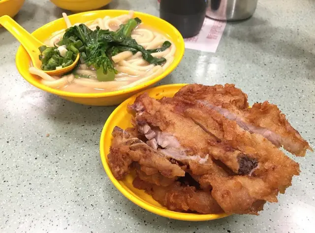 之後就係佢嘅豬扒豬扒份量勁多㗎我諗差唔多有兩塊豬扒而且每次食佢都唔會韌㗎仲有佢外面層炸醬唔會好厚又唔會好薄我鍾意將嚿豬扒吸吓啲湯又脆又軟嘅感覺好正