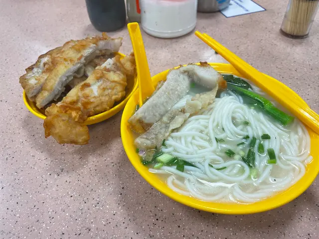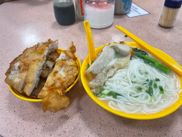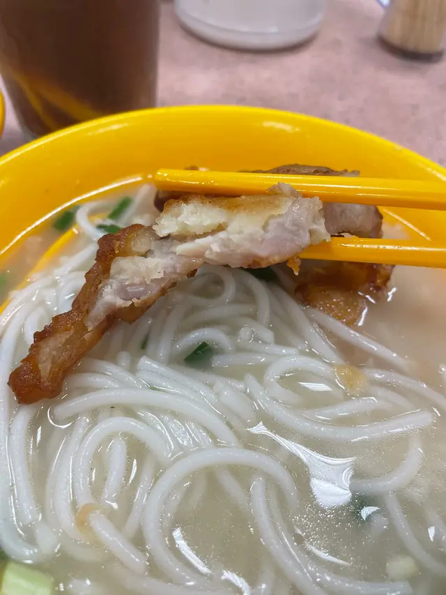 我回憶裏嘅豬扒麵🐷呢間豬扒麵由我嫲嫲食到我個仔出世都一直存在每一次去大埔墟街市我同屋企人都只會食呢一間豬扒麵我會叫佢嘅豬扒粗麵又或者豬扒河粉佢嘅粗麵係上海粗麵爽滑彈牙份量都好多伽而佢嘅河粉粗幼度適中仲好鬼滑!佢個湯底好清中和晒豬扒嘅油膩再加埋新鮮嘅蔥其實已經好好食