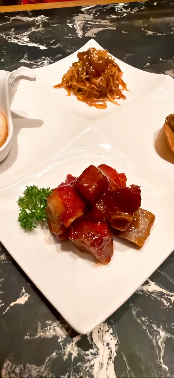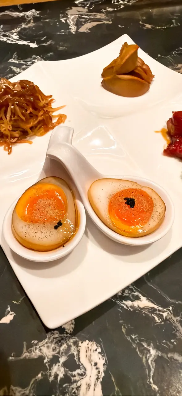 禮香醉鮑魚、上海蔥油海蜇絲•糖醋小排骨•煙燻溏心蛋