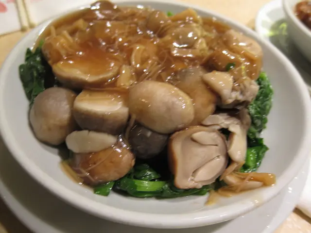 餐廳分樓上樓下,並非闊落,但睇得出是整潔的...是日例湯是送的...日日不同......唔記得今次飲的係咩名堂....只記得有紅蘿蔔豬骨和瘦肉果然不加味精的,大大碗...去邊搵呢~???點菜...1. 西蘭花北菇扒鮮腐竹西蘭花沒有over cook,顏色依然是翠綠的...2. 砵酒焗鱔球乾蔥好香,鱔完全吸收了砵酒汁!!好夠味,而且夠香~幾乎係我一個人食哂咁....可一又可再!!