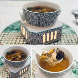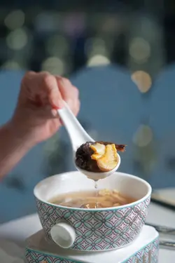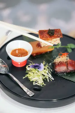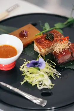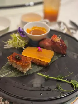 中庭经过装修后, 内部装潢高雅别致,以中性色系为主,加上以荷花池为题的特色墙,让人仿如置身荷亭中,整个氛围舒适写意。 这晚厨颂的每道菜式都有惊喜,保留传统菜式的精髓,再加入创意及变化,不论是摆盘或食材,都感受到大厨们的心思与匠心巧制。先来三款精致前菜,分别是麻辣花胶方鸡、意大利黑醋蜜瓜香煎本地松阪猪、桂花蜜味豚肉叉烧;仙气登场,上菜也充满仪式感。 麻辣花胶方鸡,酥脆可口鸡皮搭配鱼子酱,美味得无懈可击﹗花胶与幼嫩鸡肉制成方鸡,沾点微麻辣酱汁,突显鲜味。意大利黑醋蜜瓜香煎本地松阪猪,猪颈肉先以哈蜜瓜汁及苹果醋腌制,香煎后油香浓郁,跟蜜饯瓜及意大利黑醋一并放到口中,味道平衡不油腻,爽脆鲜甜有层次。 石斛核桃菌炖螺头,滋阴清热又健脾益胃的汤水,用料多,汤头份外甘香鲜甜。 紫图蜜汁火方,这个香芋紫太美了﹗紫薯刈包带著独有的菱格图案,像个手袋一样,配上即叫即烘的香脆腐皮,豆味香浓的,以及云南宣威火腿和桂花蜜,夹著一同享用,那软熟、香脆、咸香、甜蜜,滋味无穷。 海皇炒鲜奶,鲜奶炒得轻盈嫩滑且奶香十足,大厨还特别加入带子及鲜虾,更为鲜甜味美。腊八蒜蓉蒸新鲜原只开边龙虾,龙虾肉质爽弹鲜甜,配上腊八蒜其酸香独特的风味,以及秘制酱油作点缀,再以冬瓜垫底并伴以吸汁薯粉,完美!南瓜彩椒鸡头米配紫菜脆杯及生菜片,素菜都可以好美味,三种吃法,各有风味,放紫菜脆杯内吃,香脆可口;以罗马生菜包著吃,清爽鲜甜。 鲍汁扣原只六头花胶皇,非常大块,这足够7位享用,鲍汁浓郁鲜味,浓稠度刚好,花胶入口腍滑微黏,宴客必点。 黑椒粉丝虾球,大虾球爽弹鲜甜,粉丝爽口又入味,惹味又滋味,令人欲罢不能。 期间限定荷塘见鲤,是牛油果牛奶慕丝杯,鱼身乃是椰汁奶所制,最顶透明一层是桂花啫喱,如诗如画的甜品,叫人不舍得吃一勺,疯狂打卡的甜品。 酒吧有多款鸡尾酒,有酒精的或无酒精的,我这杯柑年甘溢,以橙汁、菠萝汁、椰子及蜂蜜调制,清新甜美。…查看更多