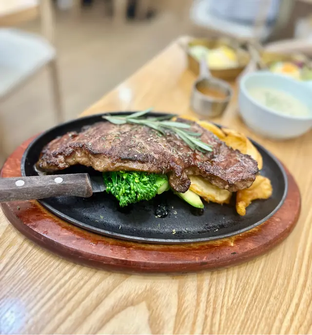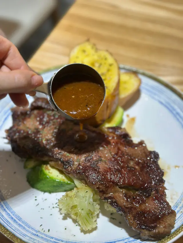 宜家有唔少餐廳都開始推平價西餐🍴,但係往往質素都強差人意,難得搵到間平得黎又唔錯既,選擇幾多幾高質,所以都幾多人黎食👍🏻(5 😍 係滿分,🤩係半分)紐西蘭牛肉眼扒 🥩 - $118 (好味指數:😍😍😍😍)煎得恰到好處,有焦香~ 味道甘香,有牛味🐮又幾juicy,幾有咬口但唔會韌,亦唔會靠依賴鬆肉粉👍🏻 油花分佈平均,有油香但唔漏,可以配燒汁🔥食就更加香甜~ 同時配左爽口既胡蘿蔔條🥕、清新既翠玉瓜🥒、香脆綿密既薯條🍟都唔錯黑松露野菌雞柳意粉 ⚫️🍄🟫🐥🍝 - $88 (好味指數:😍😍😍😍🤩)黑松露⚫️味道芳香馥郁幾惹味,有獨特既泥土同菌菇🍄🟫氣息,配埋清新軟腍既野菌🍄🟫、香口嫩滑既雞柳🐥、有鹹香又油潤既煙肉🥓去煮,層次豐富~ 個汁夠creamy,意粉🍝幾掛汁,煙煙韌韌~前菜 (好味指數:😍😍😍😍)係胡麻豆腐⬜️,有微酸開胃🤤既芝麻醬,配埋清香軟滑既豆腐⬜️幾清爽粟米野菌忌廉湯 🌽🍄🟫🥣 (好味指數:😍😍😍😍)質感幾creamy, 有幾醇厚既奶味🥛,味道清甜,亦有爽口既粟米🌽同埋清香既蘑菇🍄🟫~蒜蓉法包 🧄🧈🍞 - $5 (好味指數:😍😍😍😍🤩)蒜蓉🧄濃郁惹味,有埋有鹹香既牛油🧈,質感香脆幾好食😋玫瑰烏龍茶 & 桂花烏龍茶 🌹🌼🪸☕️ (好味指數:😍😍😍🤩)味道清新可以解膩,無糖都幾健康~甜品 (好味指數:😍😍😍😍)最尾有個芒果布丁🥭🍮,酸酸甜甜,口感軟滑,亦有清香既椰奶🥥🥛好味指數:😍😍😍😍推介指數:😍😍😍😍…查看更多
