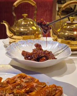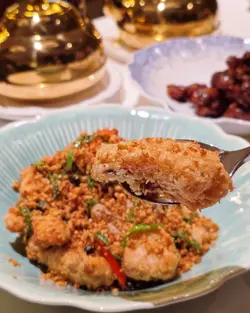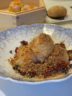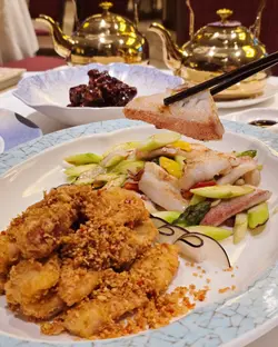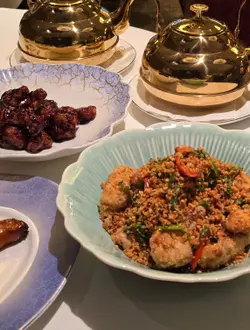 中环上班族有福了,喜欢中菜和饮茶嘅朋友,最近再毕打行新张不久的「中环饭店」午市主打精选套餐和即蒸点心,餐厅环境优雅装潢有特色,而且服务极佳,真心推荐点心和小菜都非常之高质,以中环这个价位真系性价比超高,无论午饭或者招待客人都非常适合👍🌟午市精选套餐 $ 268 (位)两位起每位可选一款精选点心、蜜汁猪腩叉烧、老火靓汤每两位至三位可选一款小菜、明太子海鲜炒香苗、是日精选甜品和饮品,午餐嚟讲真系丰盛又抵食🌟手工点心✨避风塘虾饺 ·焗云腿萝卜千丝酥✨蟹籽鲜肉烧卖 ·水晶鲜虾饺皇点心即叫即蒸,非常有水准,最有惊喜系创意「避风塘虾饺」,虾饺皮超酥脆里面嘅馅料竟然可以同普通蒸虾饺一样,虾肉弹牙好Juicy,再加上避风塘香够晒惹味,虾饺烧卖系我饮茶必点点心,另外焗云腿萝卜千丝酥,好酥脆之余,包住清甜多汁嘅萝卜丝,好好食✨蜜汁猪腩叉烧|呢个叉烧真系不得了,猪腩肥瘦相间,外焦内软口感软腍松化,蜜汁再加上柚子,甜蜜之余味道清新✨赤小豆粉葛猪骨汤|足料老火靓汤,汤头味道浓郁,饮完之后喉咙感觉非常舒适🌟精选小菜✨大虾黄金酥 |超惊喜嘅小菜,四大只超巨型大虾,被满满嘅咸蛋黄包围,外层咸香酥脆,鲜虾爽口弹牙,配上脆炸米通,午市套餐竟然可以食到呢个小菜,老板真系好佛心✨拔丝咕噜肉|咕噜肉外层香脆,酸甜刚好嘅咕噜肉酱汁包围,肉质肥瘦适中够爽口,每一口都好有水准,非常出色✨明太子海鲜炒香苗|炒饭炒得干身粒粒分明,明太子配上虾仁、带子、蔬菜粒、鸡蛋和香葱,味道带点明太子的咸香,好味道🌟甜品✨红枣千层糕 |烟韧软糯,红枣糕加马蹄糕,味道天然太甜✨蛋白杏仁茶 |超浓杏仁味道,口感顺滑,秋冬饮完倍感温暖…查看更多